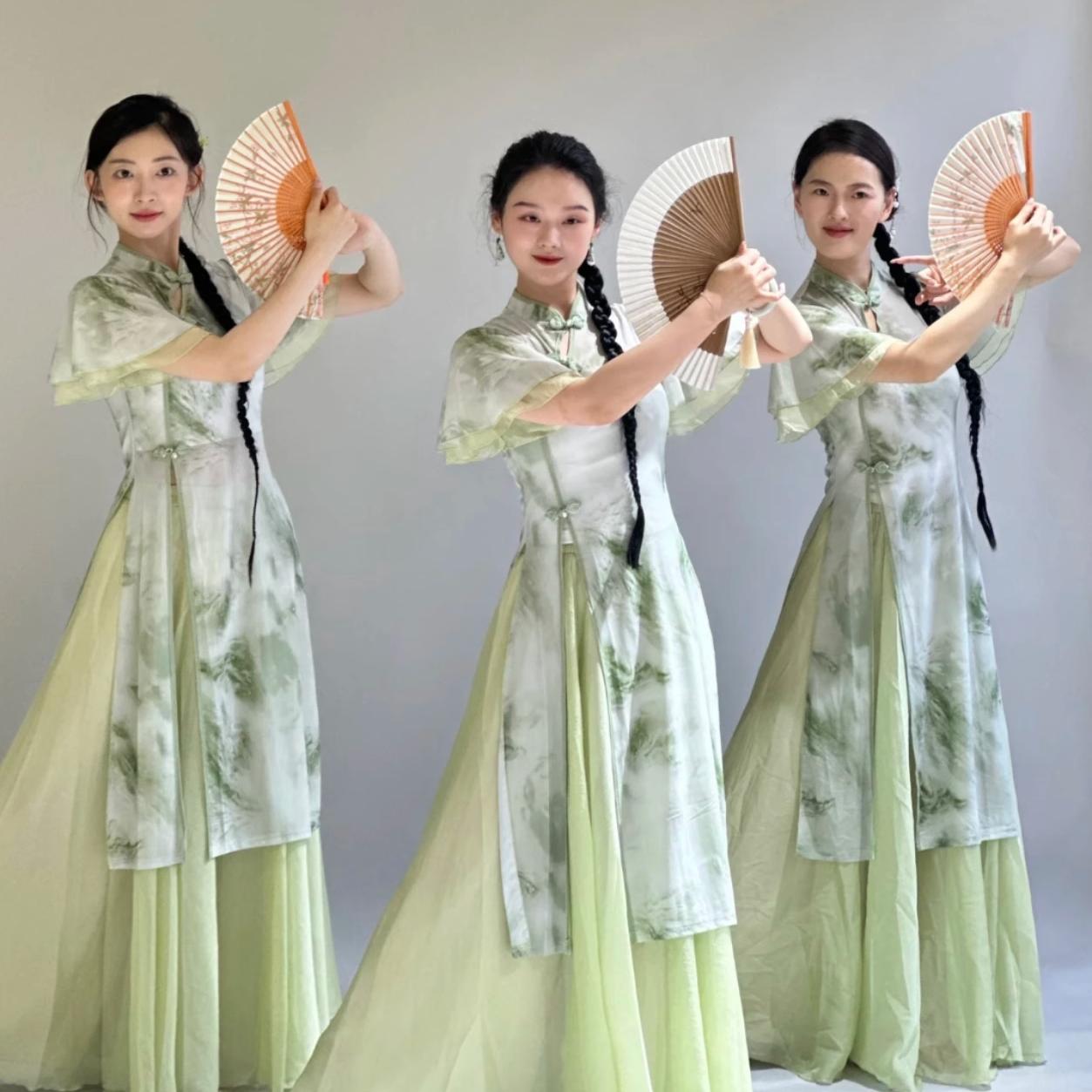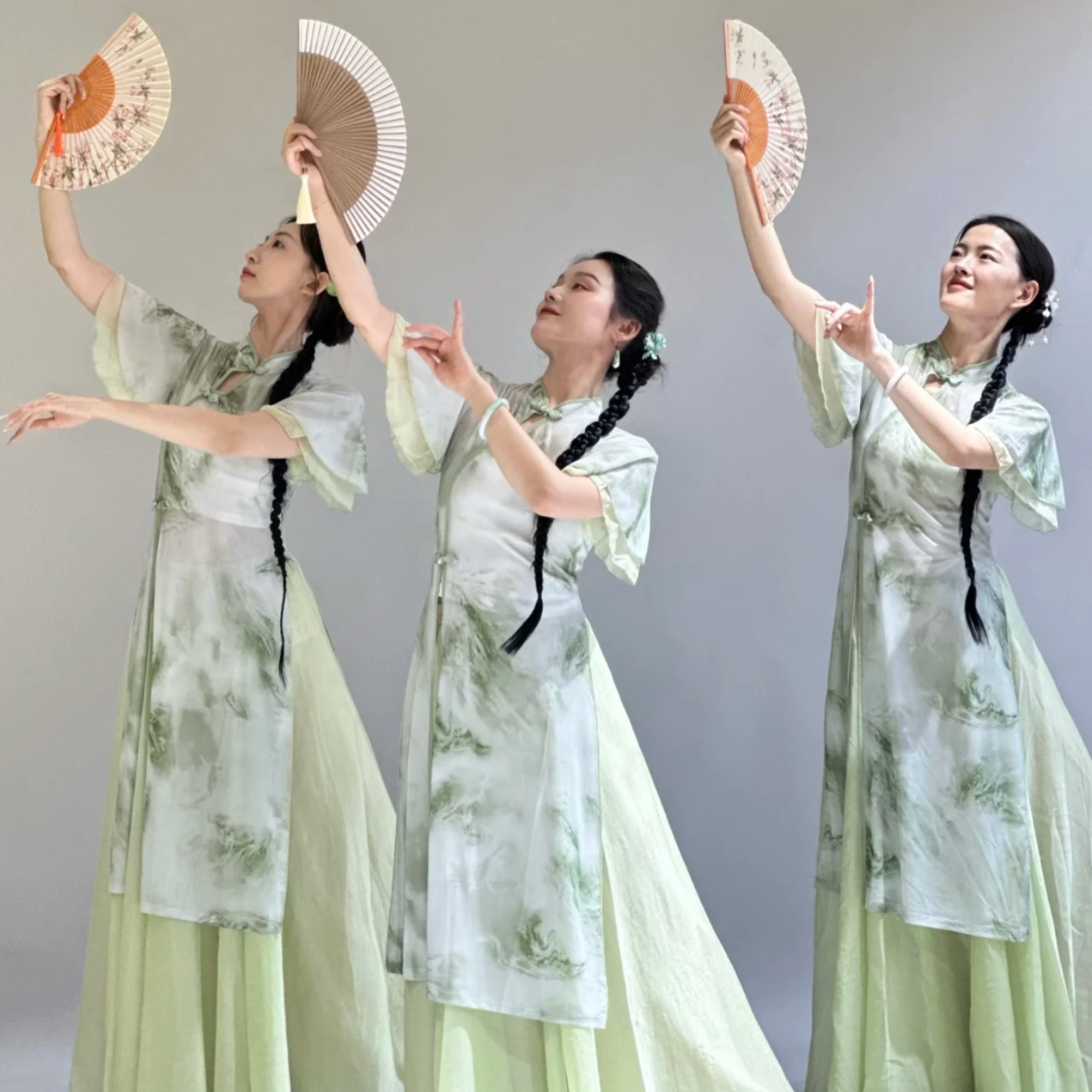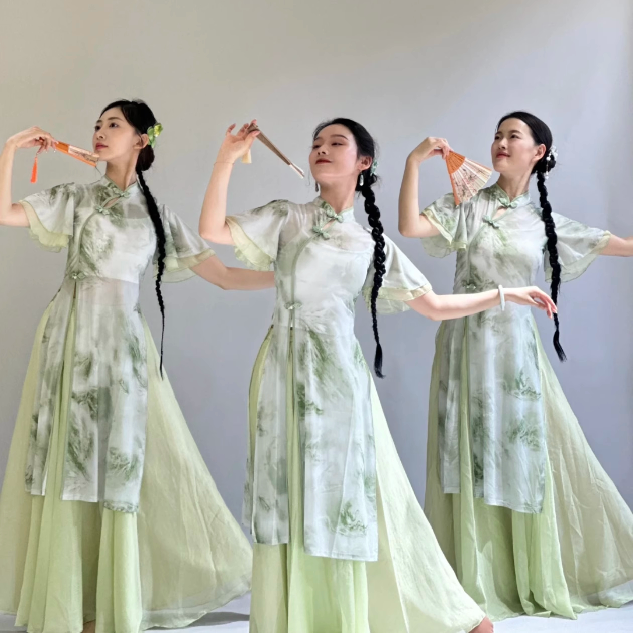 古典舞蹈服女飘逸新中式 旗袍国风身韵纱衣练功形体基训舞台演出服