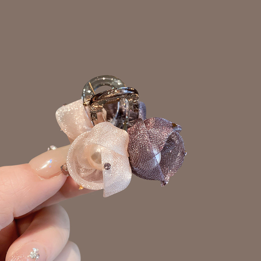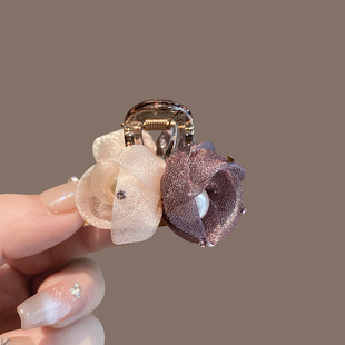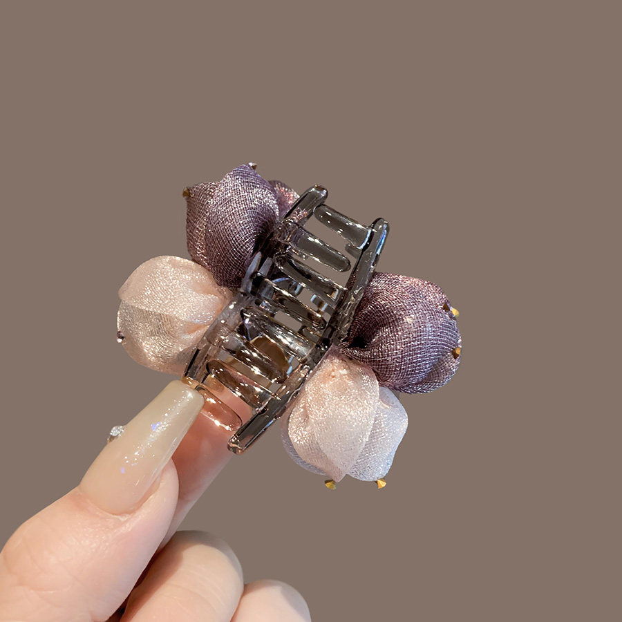 超仙渐变紫绢纱花朵小号抓夹时尚 气质侧边刘海顶夹百搭碎发鲨鱼夹