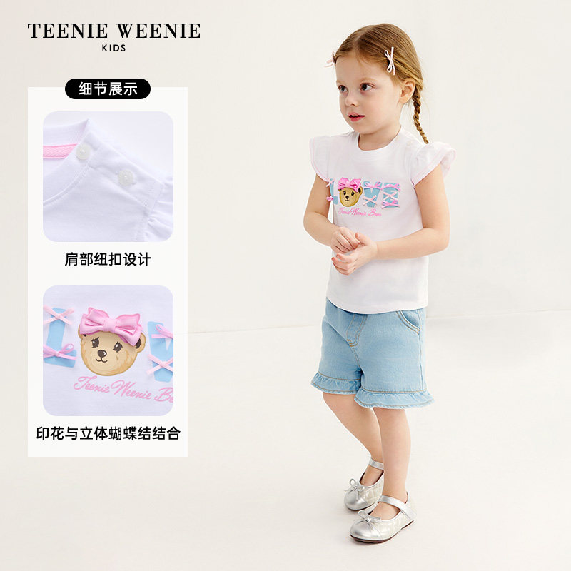印花T恤打底衫 舒适女宝宝可爱小飞袖 Kids小熊童装 TeenieWeenie