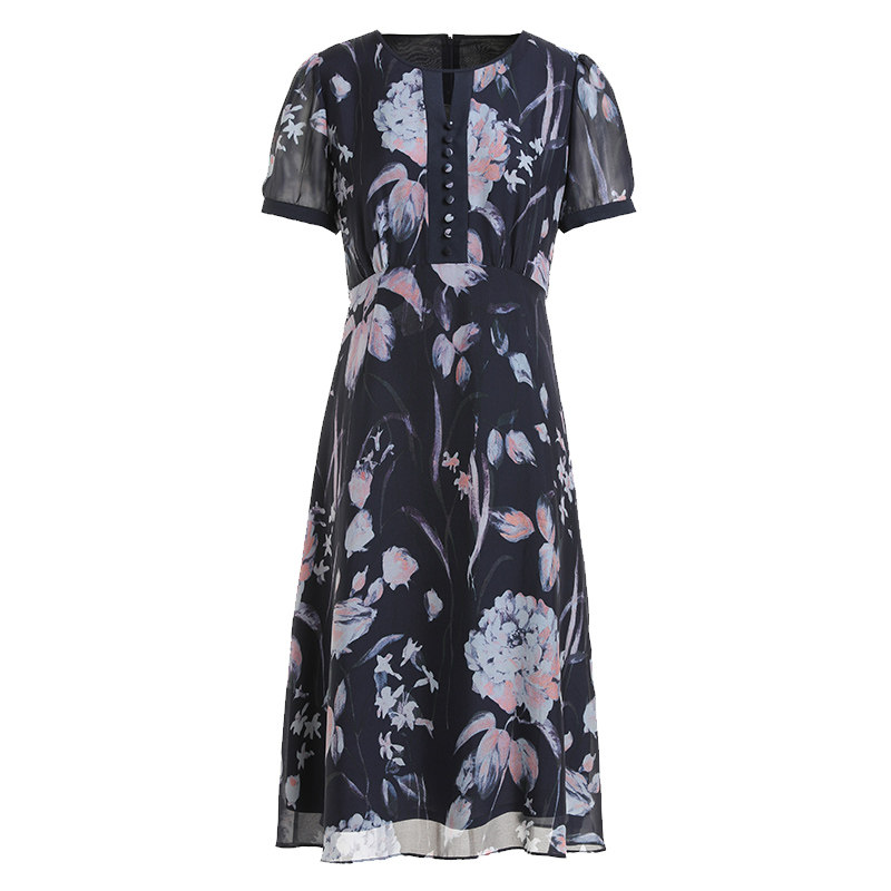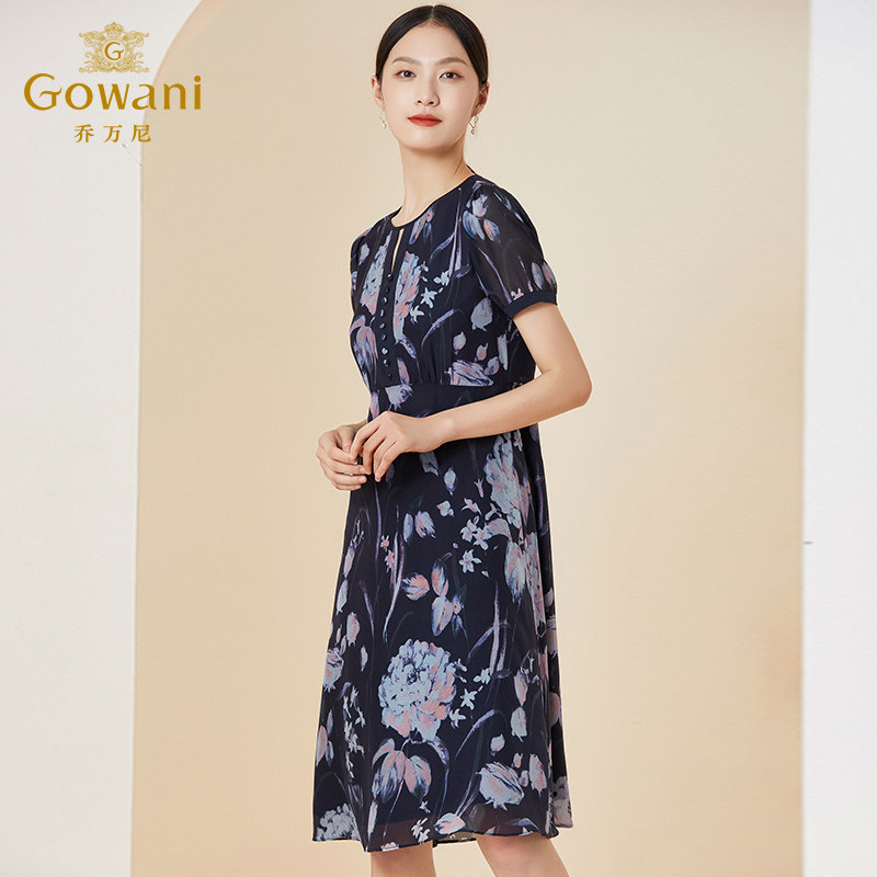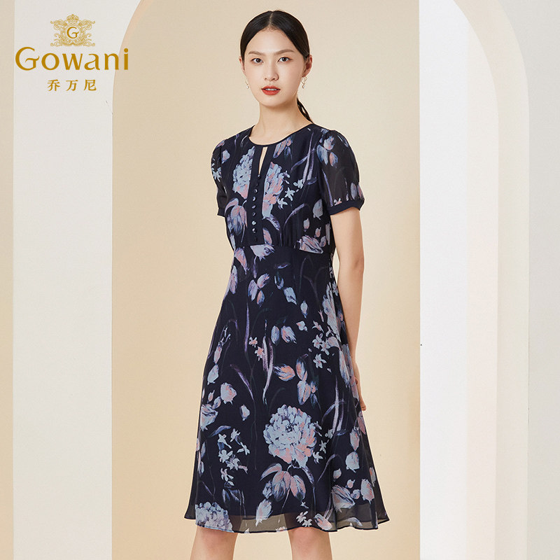 优雅收腰印花中长裙子EI2E767 乔万尼真丝衣裙法式 桑蚕丝
