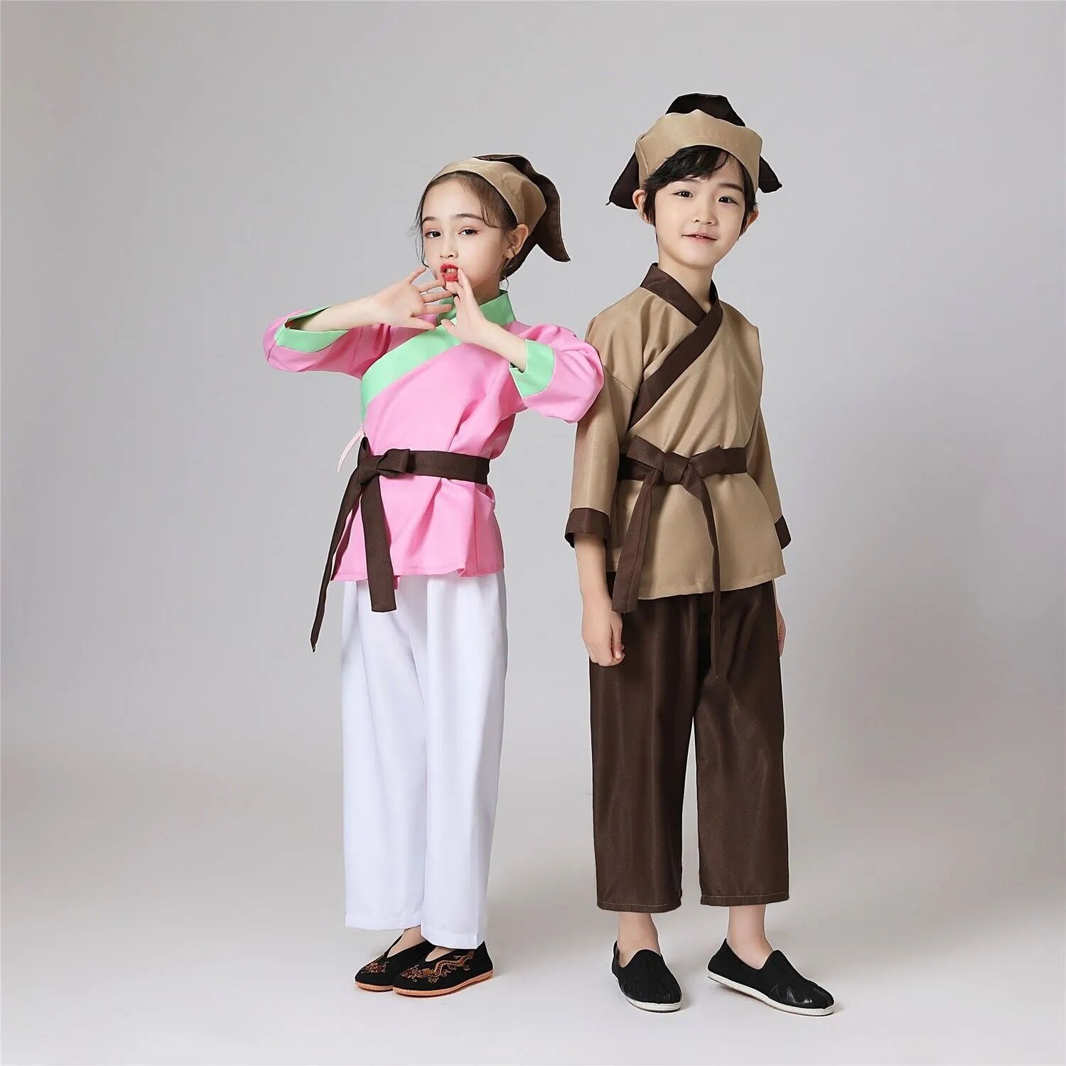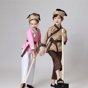 汉服男童小学生国学服装 开笔礼书童朗诵儿童演出服 女童中国风古装
