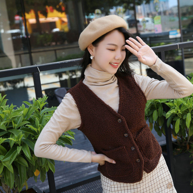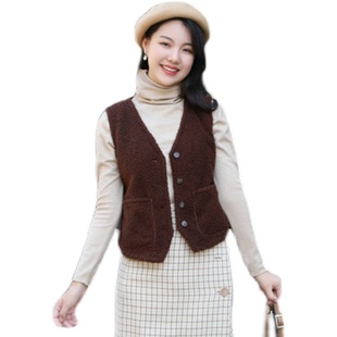 双面加绒马甲黑色米色秋冬新款 V领背心 文艺仿羊羔绒保暖内穿厚款