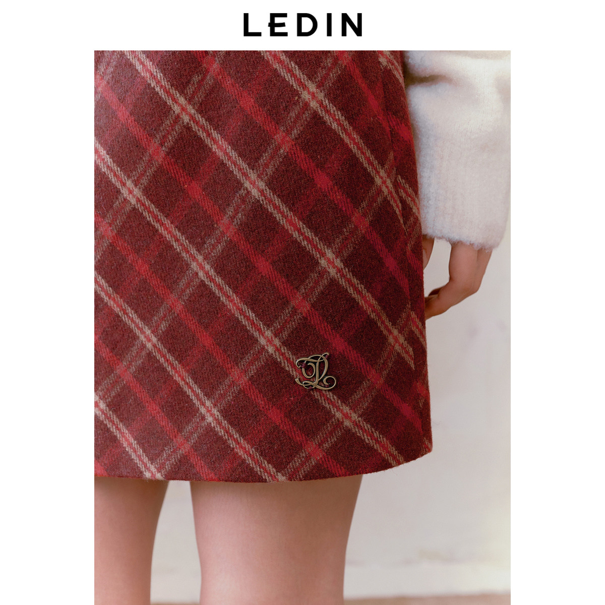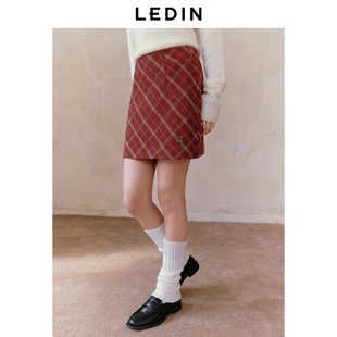 包臀A字裙子胖mm高腰显瘦短裙女 新款 大码 复古格子毛呢半身裙冬季