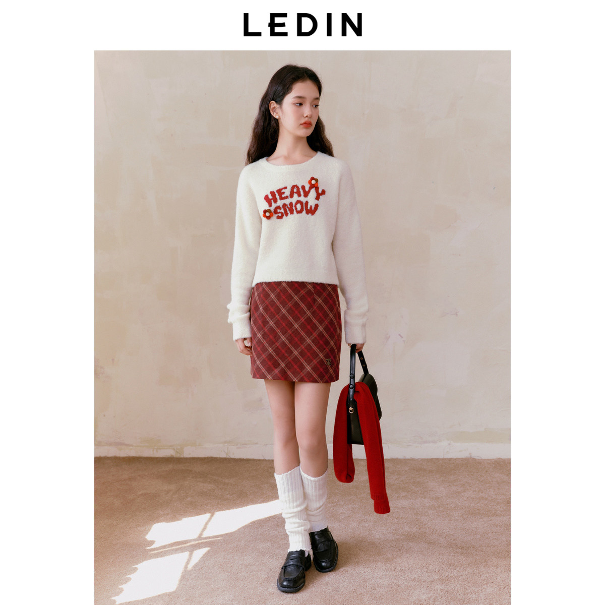 裙子 高腰显瘦加厚中长款 草莓跳 复古波点羊毛针织半身裙女冬季