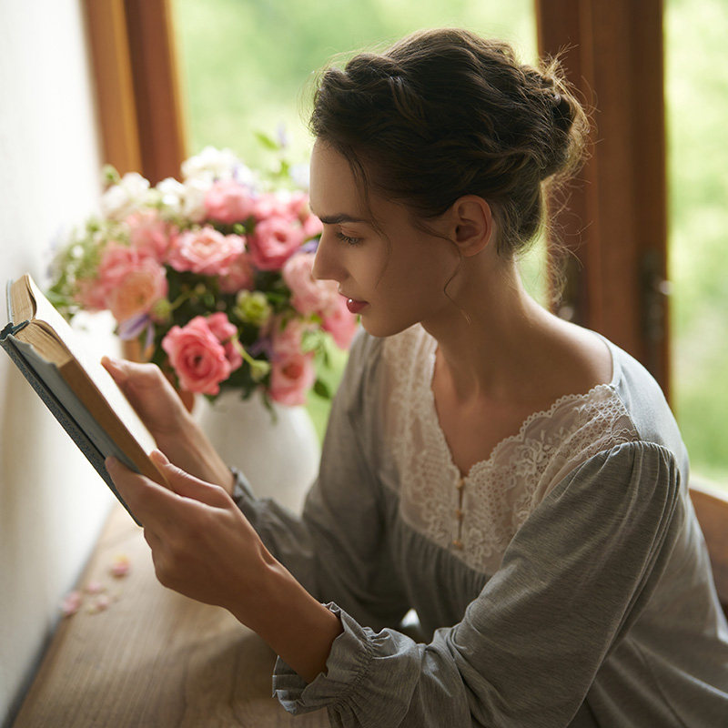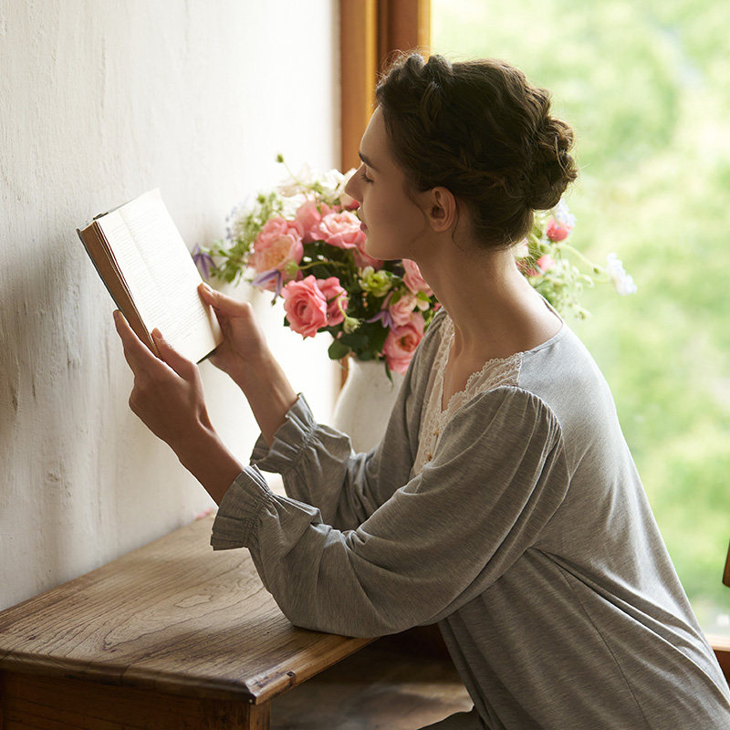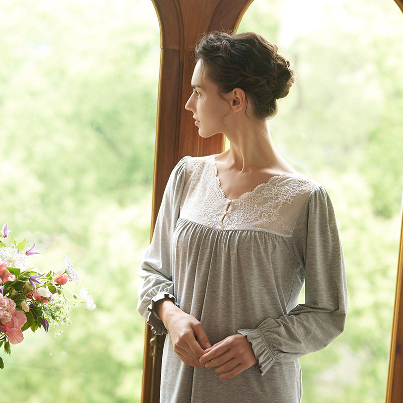 带胸垫纯棉哺乳产后睡裙待产裙 春秋季 芬腾可安长款 月子服睡衣女款