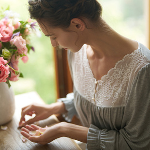 绫 睡袍夏女 「幽雅」性感蕾丝拼接诱惑轻熟凉感睡裙紫罗兰修身