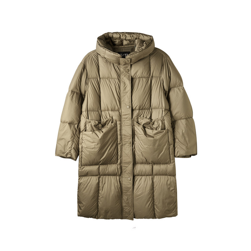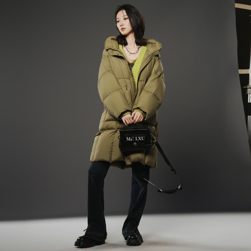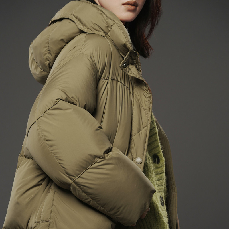 新款 冬季 TI军绿色云朵蓬松感羽绒服女立体连帽鸭绒外套尤缇时尚