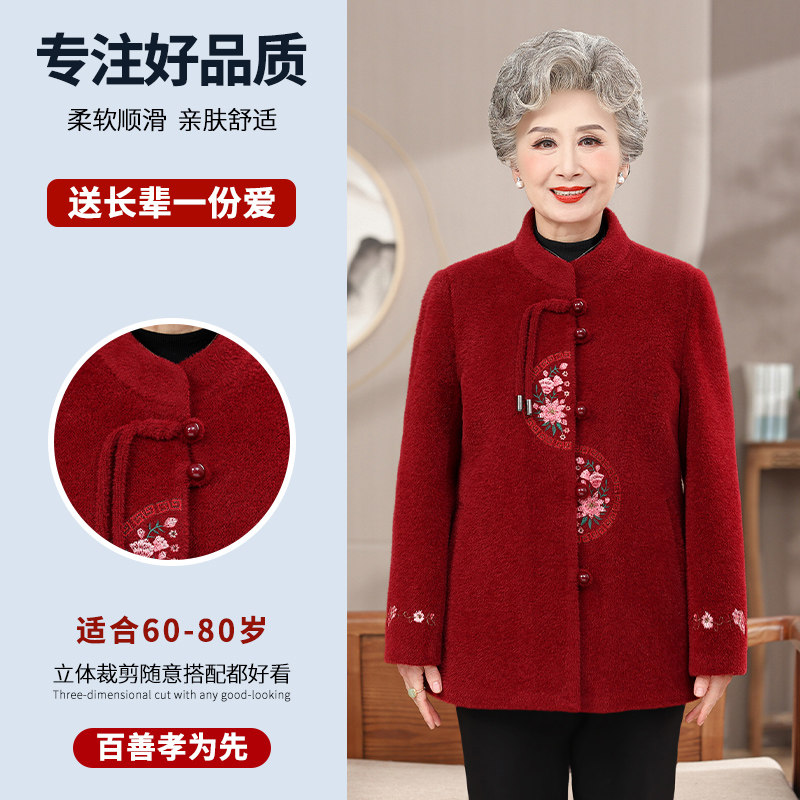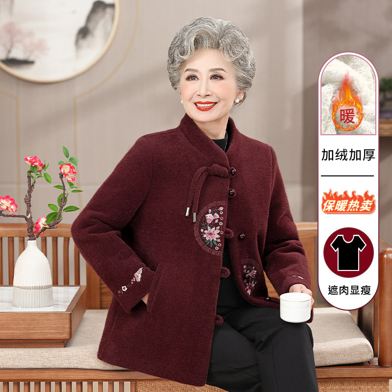 加绒加厚棉衣外套女老人棉袄套装 中老年女装 棉服奶奶装 妈妈装 冬装