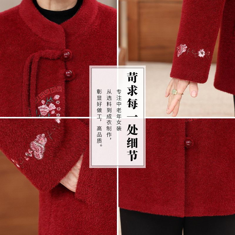 冬 减龄洋气保暖棉服中老年大码 妈妈装 加绒加厚颗粒绒棉衣中年女装