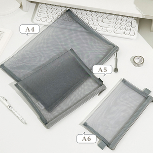 三年二班简约网纱文件袋A6拉链手提袋A5收纳袋学生用A4档案袋开学