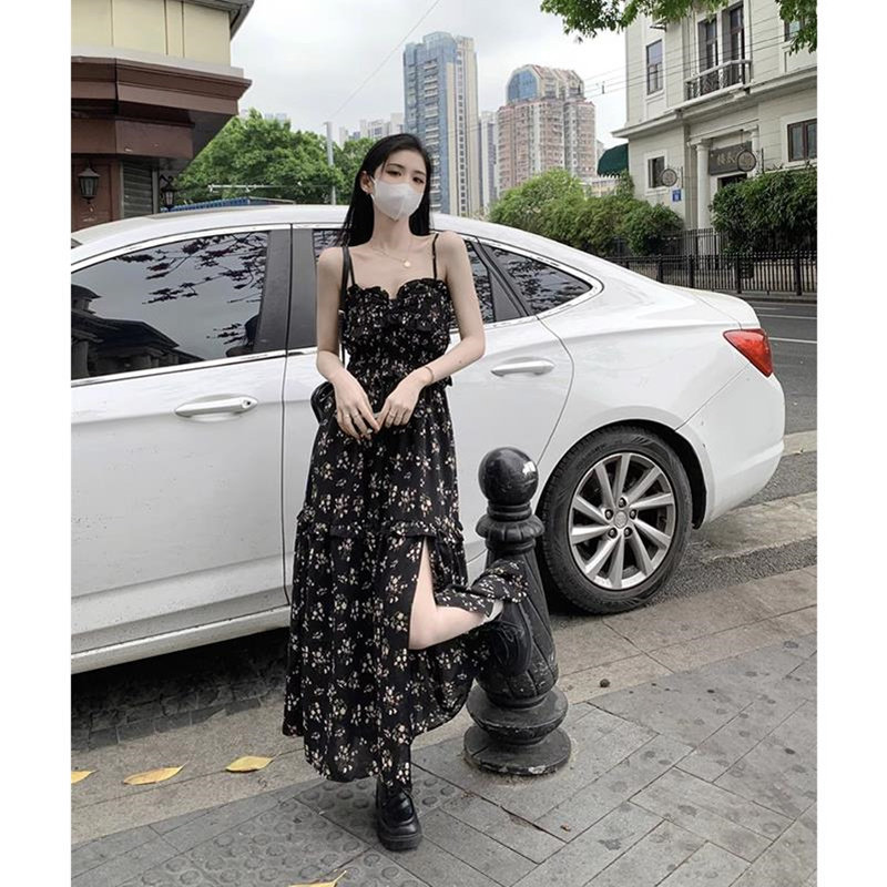 茶歇裙 御姐气质高级感长款 碎花吊带连衣裙子女2025夏季 温柔风法式