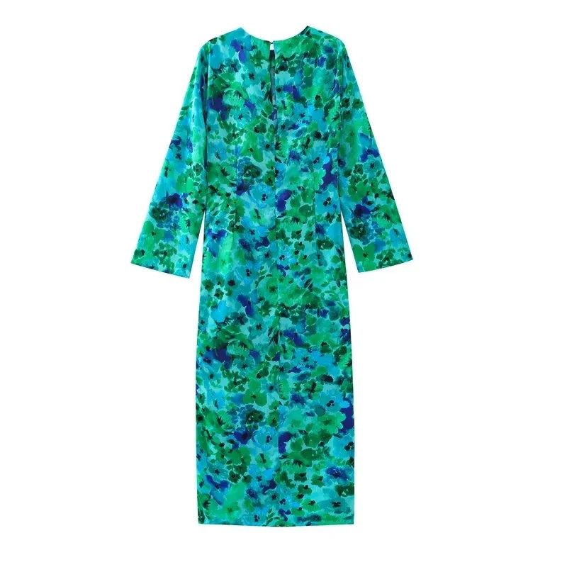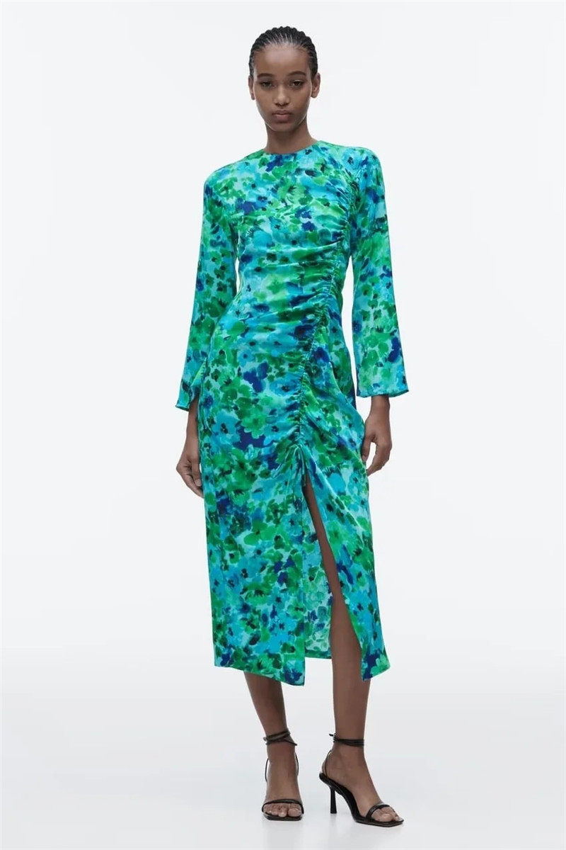 one print step dress 一步连衣裙 Slit 开叉褶皱印花修身 pleated