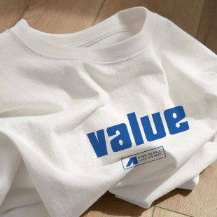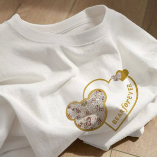 薄款 宽松圆领印花半袖 纯棉夏季 t恤女韩版 微透上衣 白色短袖 100%棉
