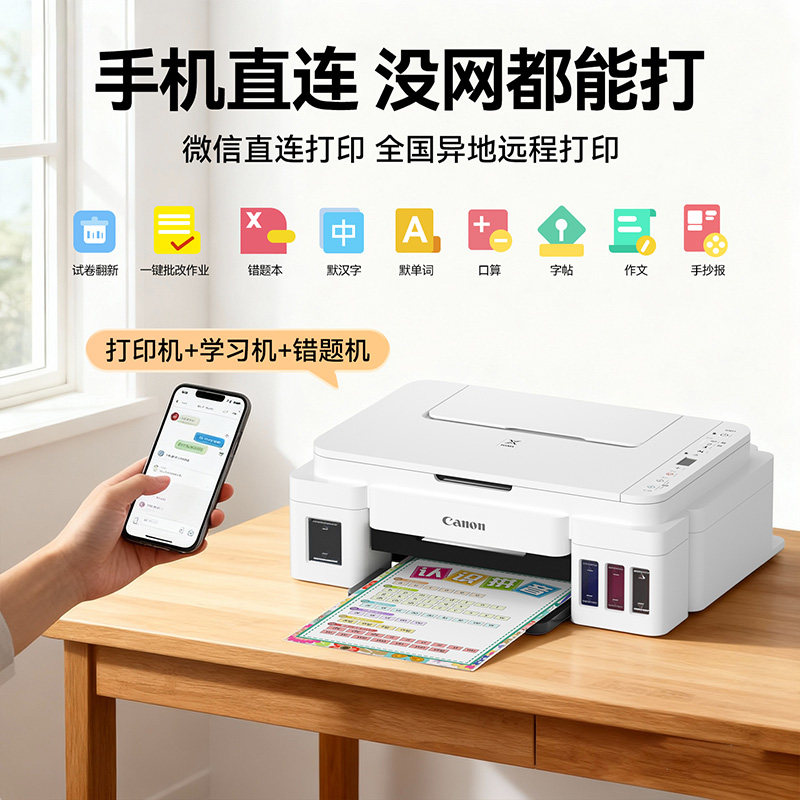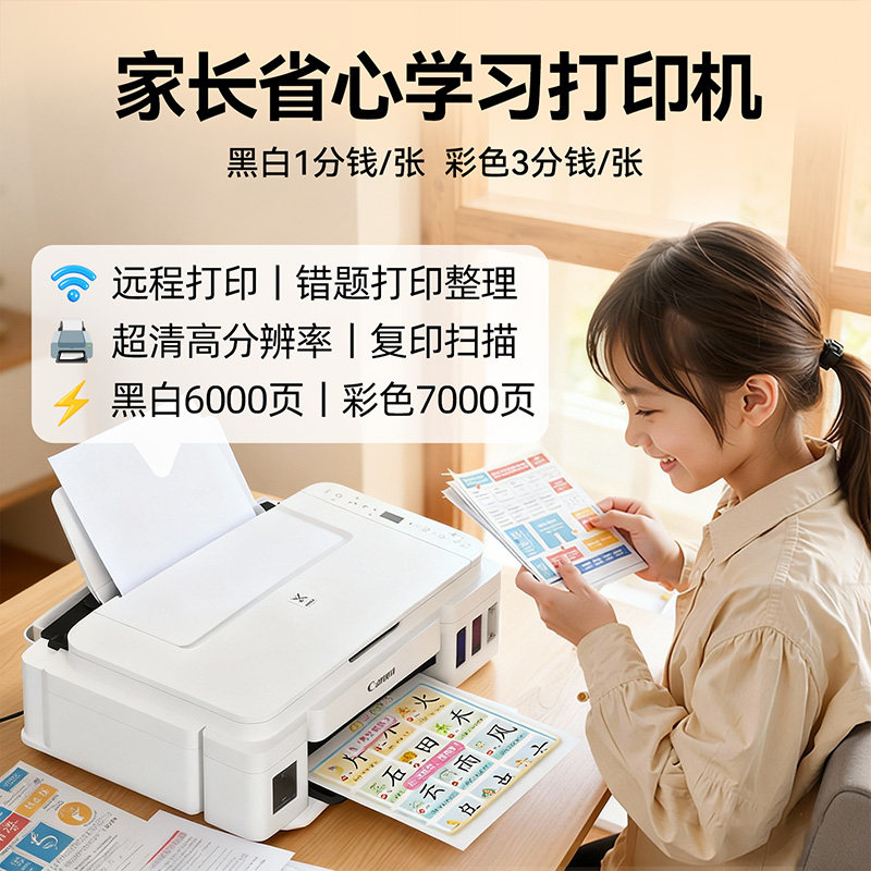 佳能G3810彩色墨仓式 打印机小型家用可连手机复印扫描一体机连供多功能无线A4喷墨家庭学生办公专用政府补贴