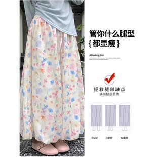 胖mm200斤宽松阔腿冰丝花苞长裤 碎花裙裤 高腰显瘦大码 新款 女夏季