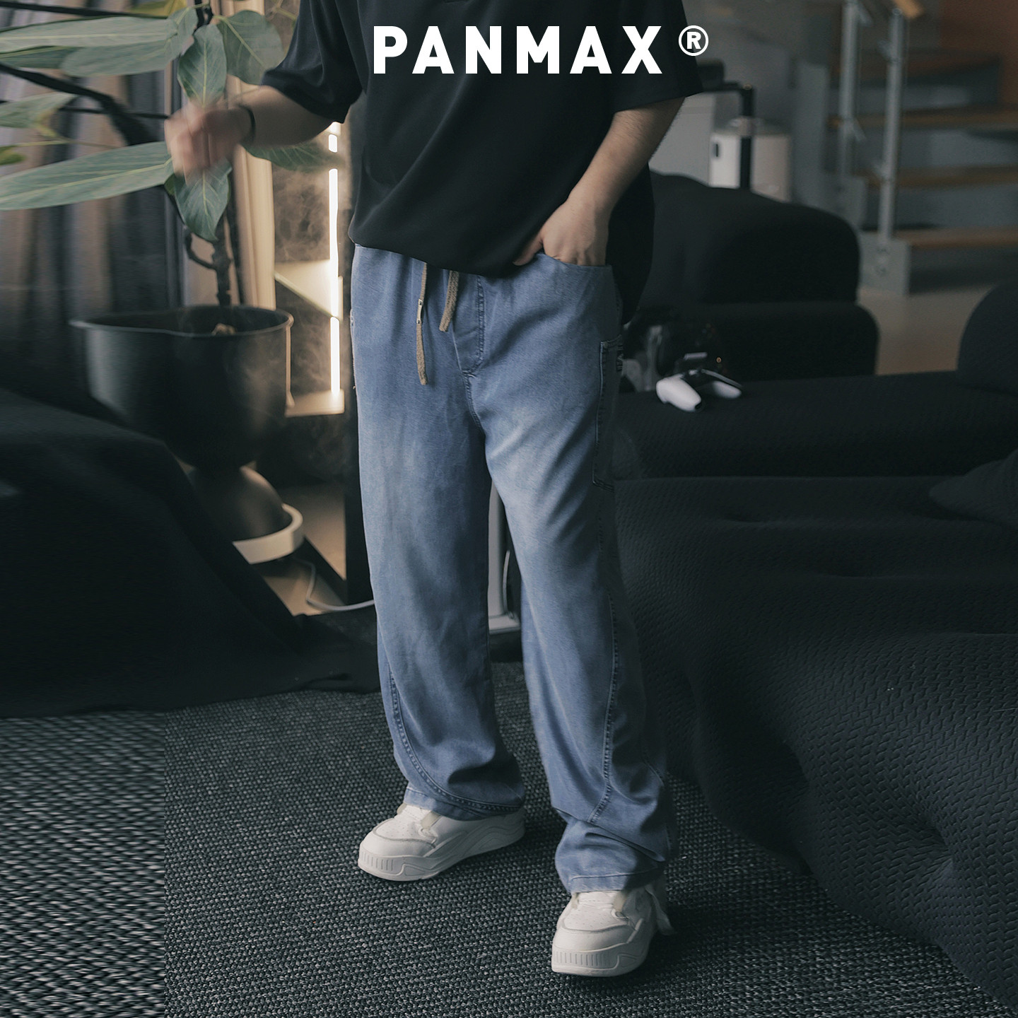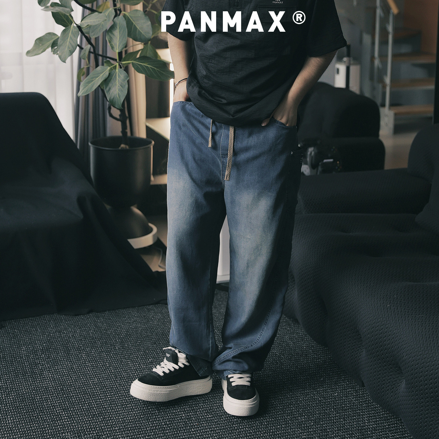 渐变水洗松紧腰加大长裤 PANMAX潮牌大码 弯刀透气牛仔裤 美式 男装