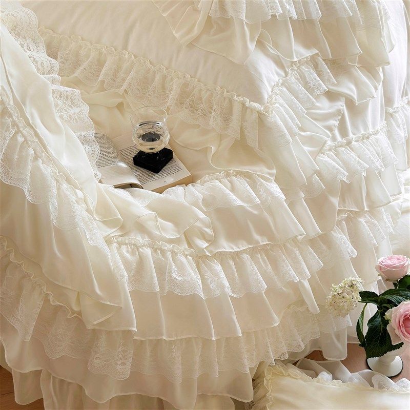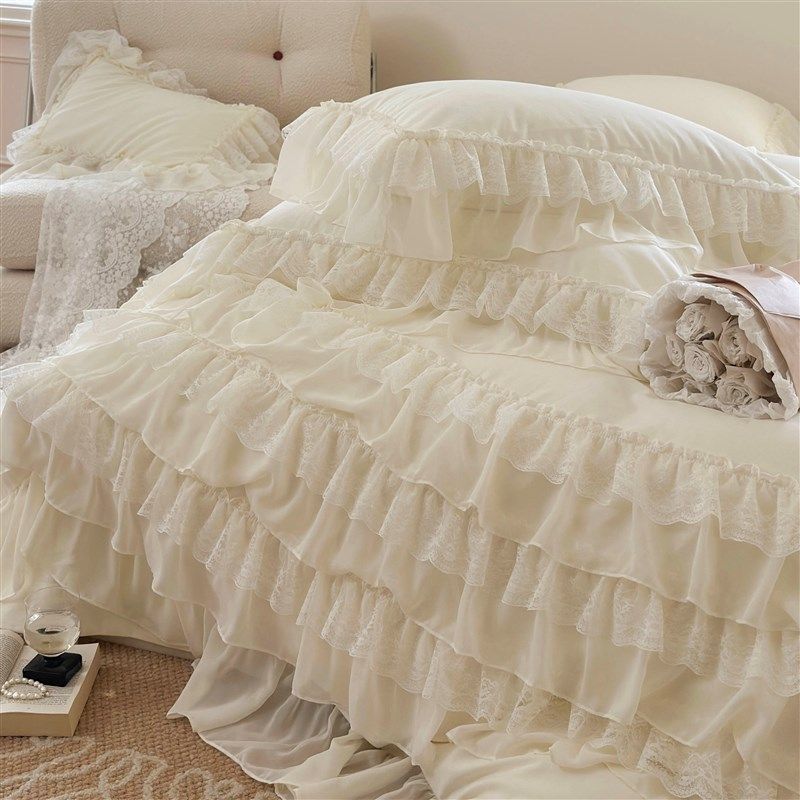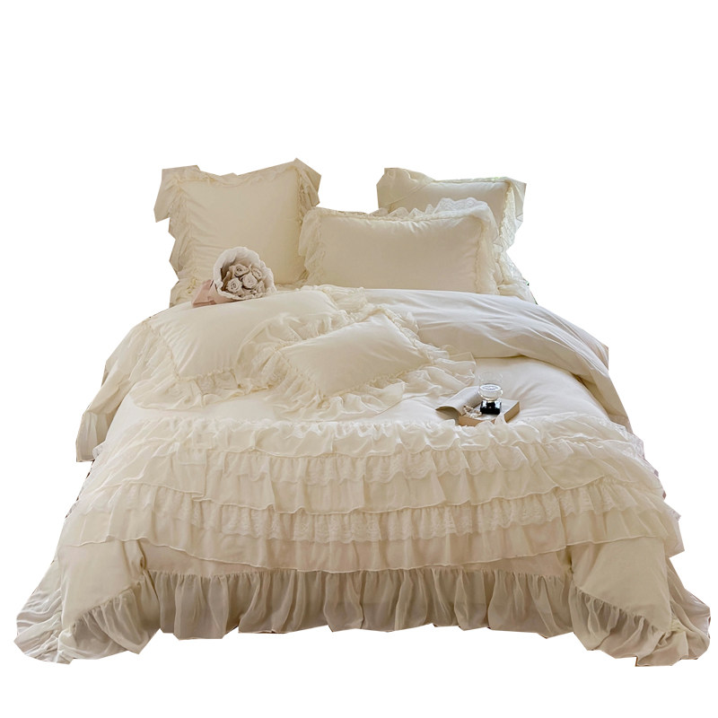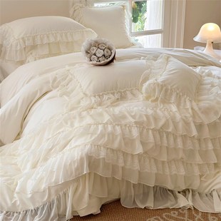 圣尼薇亚︱浪漫公主全棉磨毛四件套法式 蕾丝花边秋冬纯棉被套牀单