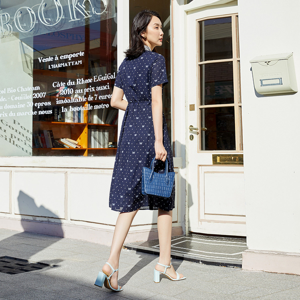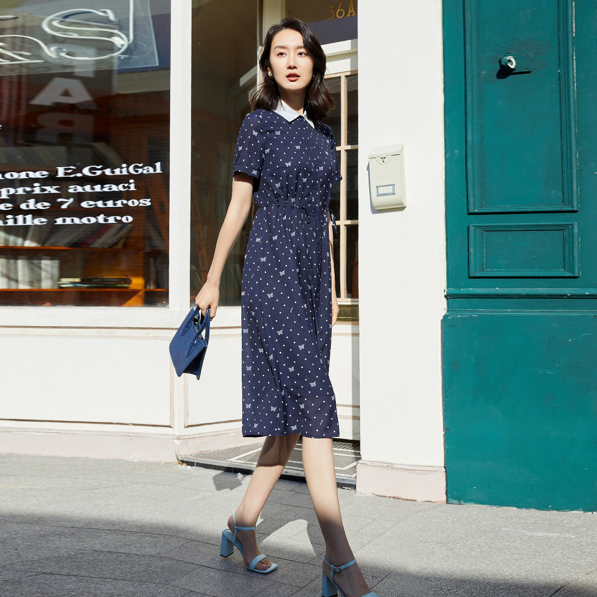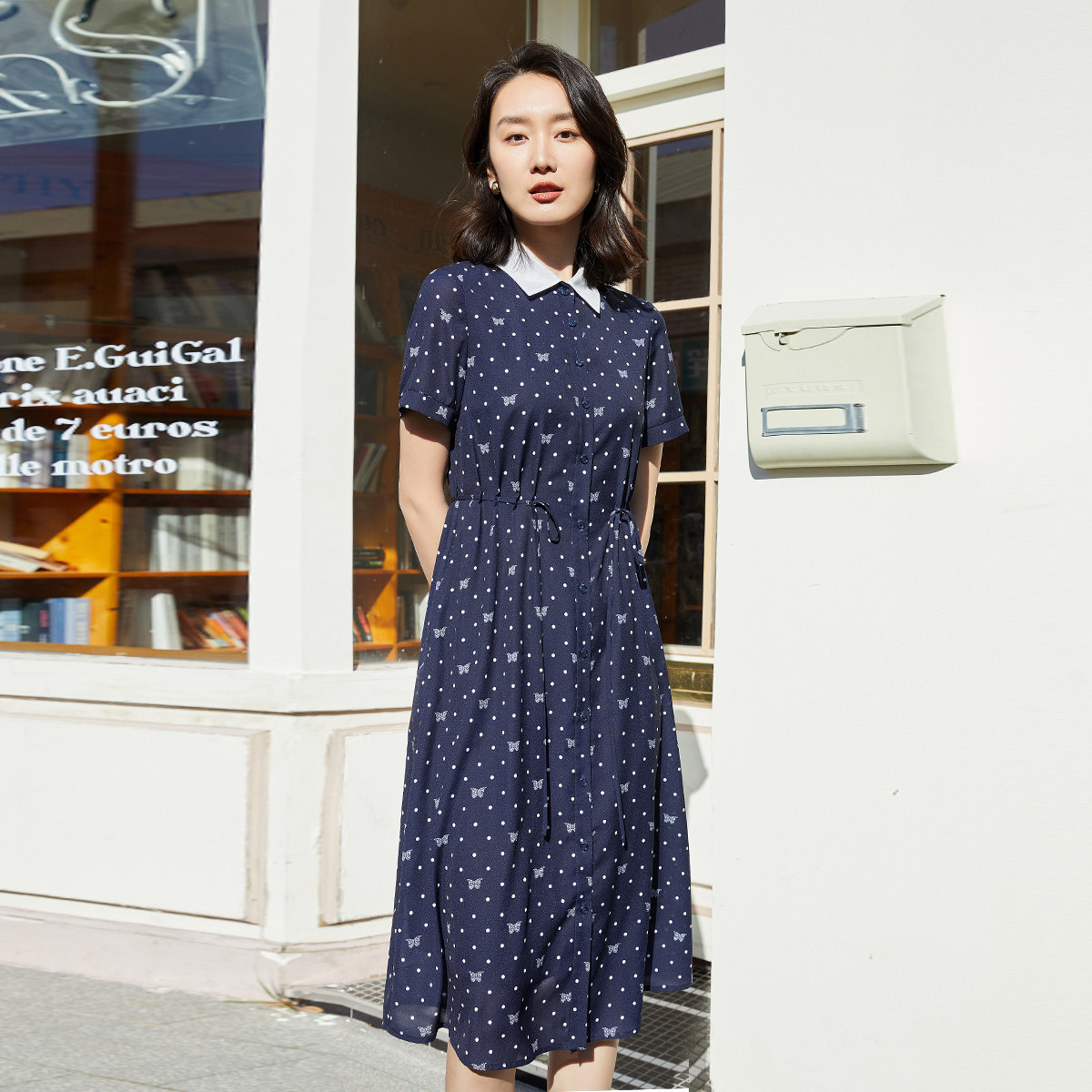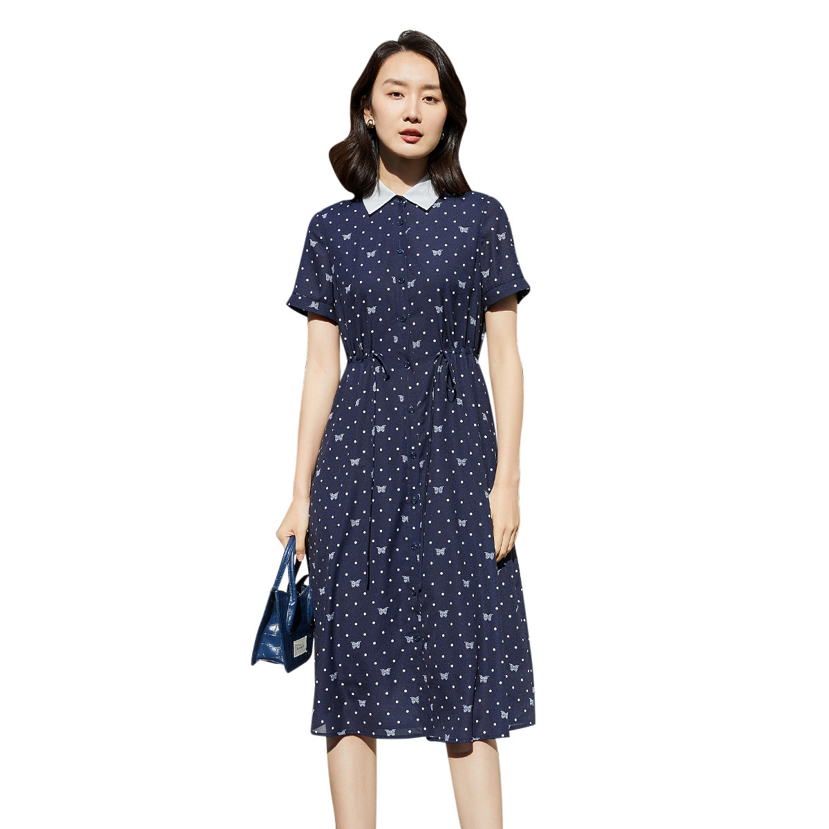 1C21L1206 印花收腰显瘦POLO领雪纺连衣裙 歌蒂诗夏季 专柜时尚