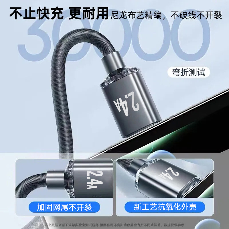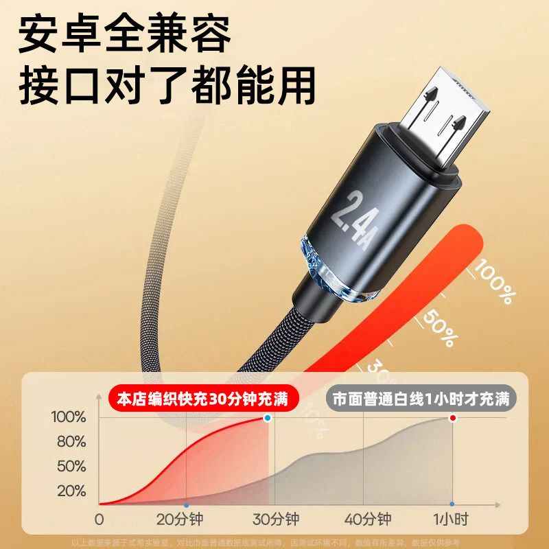 弎希 梯形接口microusb加长2米风扇充电宝监控t型充电器线适用华为vivo小米oppo三星手机 安卓快充数据线老式