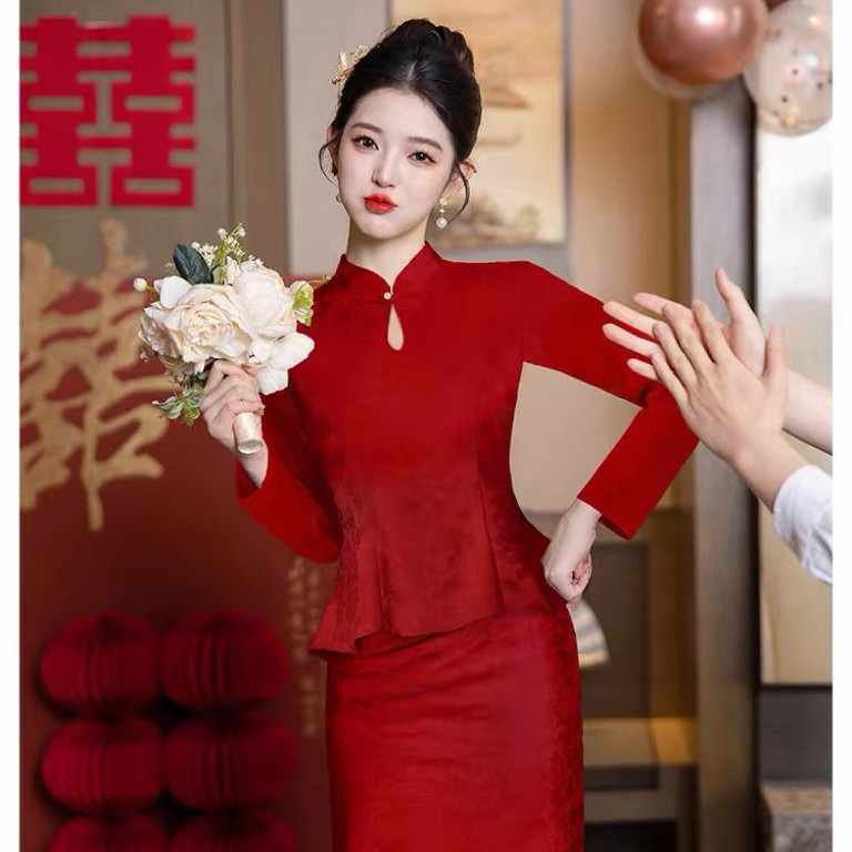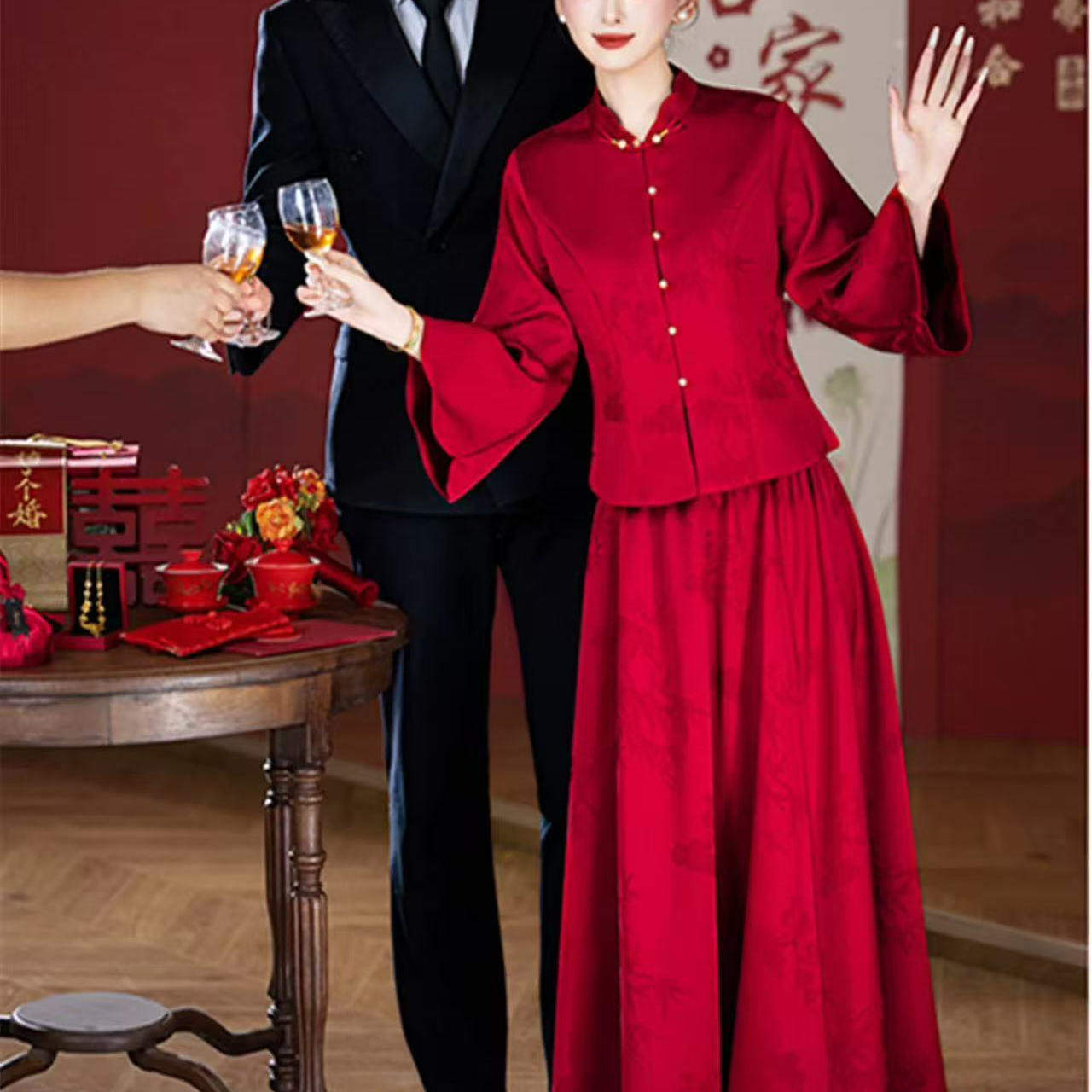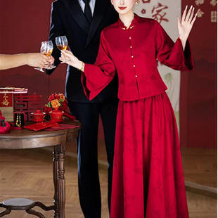 景甜玄红 中国风红色旗袍 画报夫人原创自制改良夏季 中式