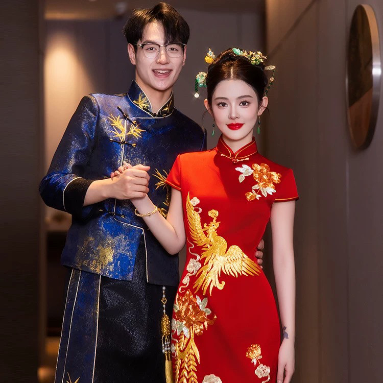 LHMknk1画报夫人原创自制秋冬厚款 秋冬滴水玫瑰 丝绒水滴刺绣旗袍