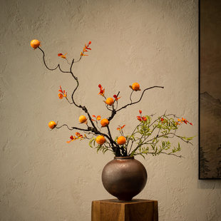 禅意复古陶瓷花瓶新中式 饰品 宋代美学插花摆件民宿侘寂玄关创意装