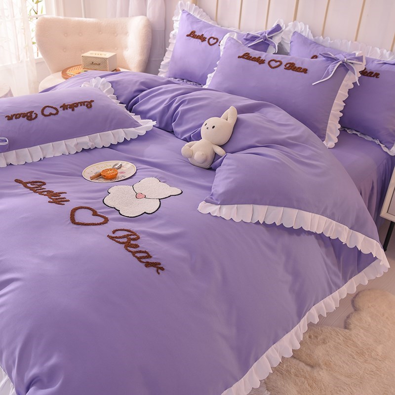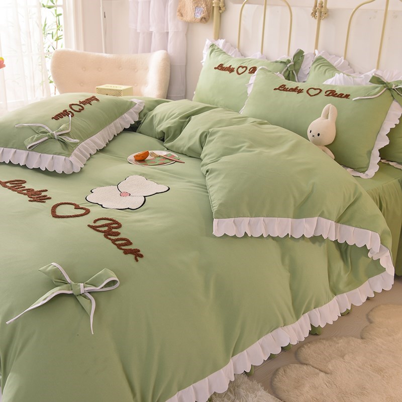 新裸睡公主风四件套带荷叶花边床裙款 被套全棉纯棉少女心床上可 式