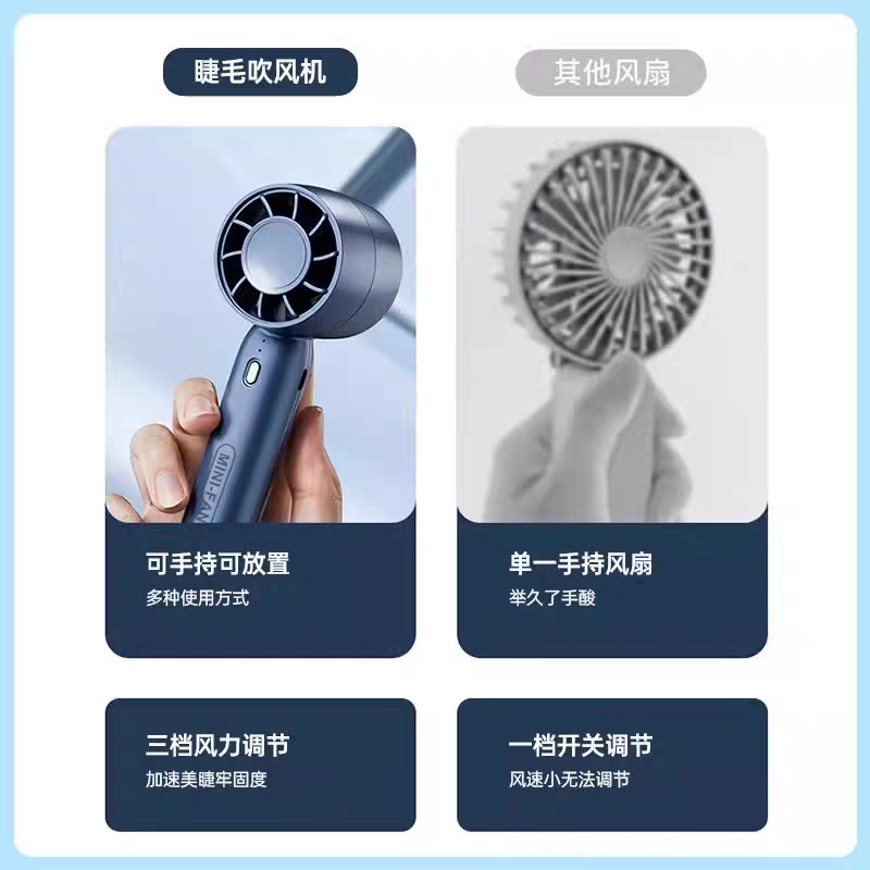 静音手持吹风机便携式 随身小型风扇便携USB充电三档调解超长续航