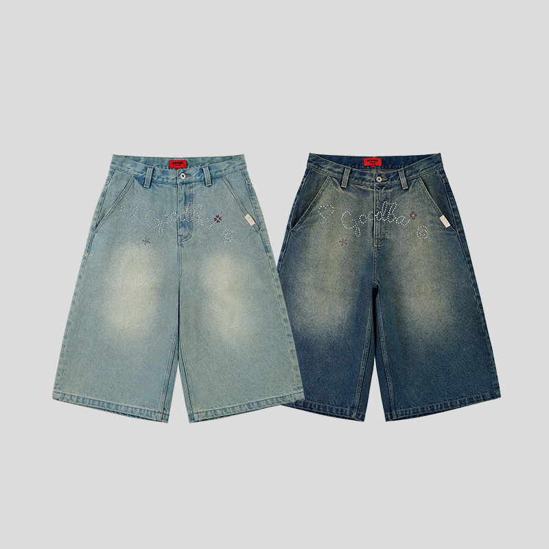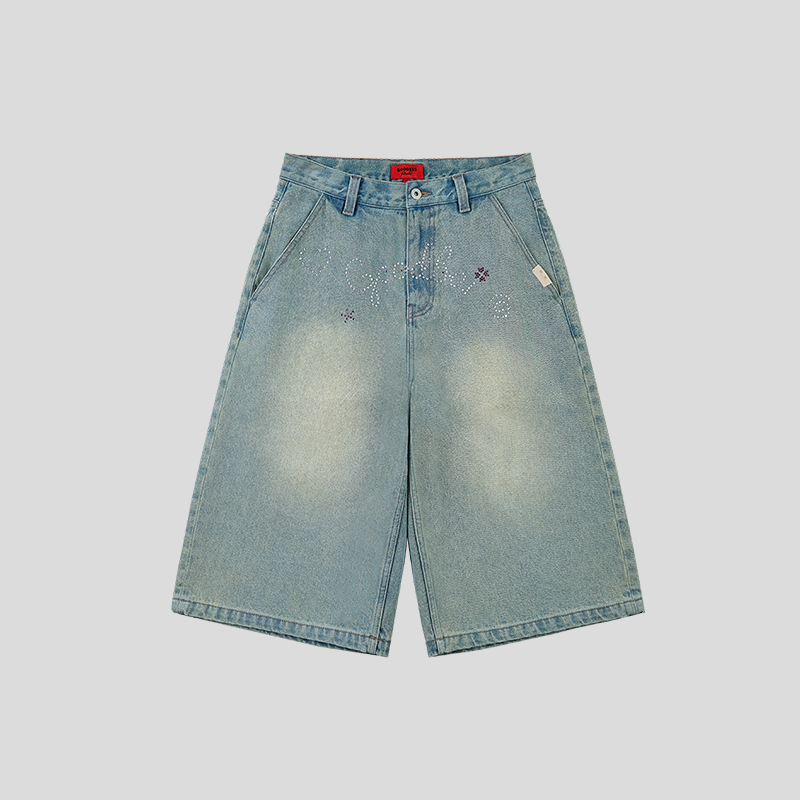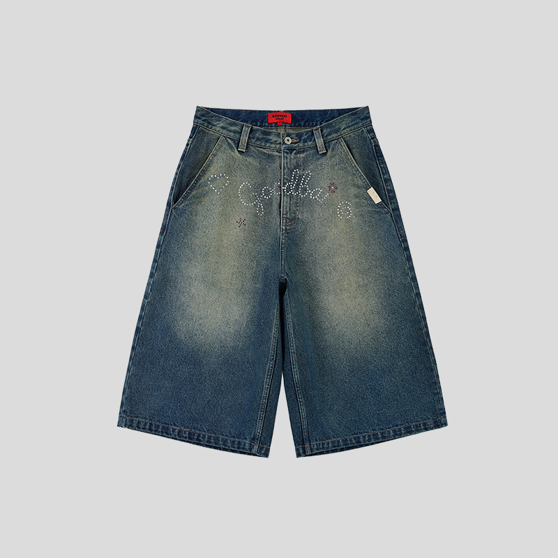 GOODBAI GOODEES烫钻logo水洗牛仔中裤