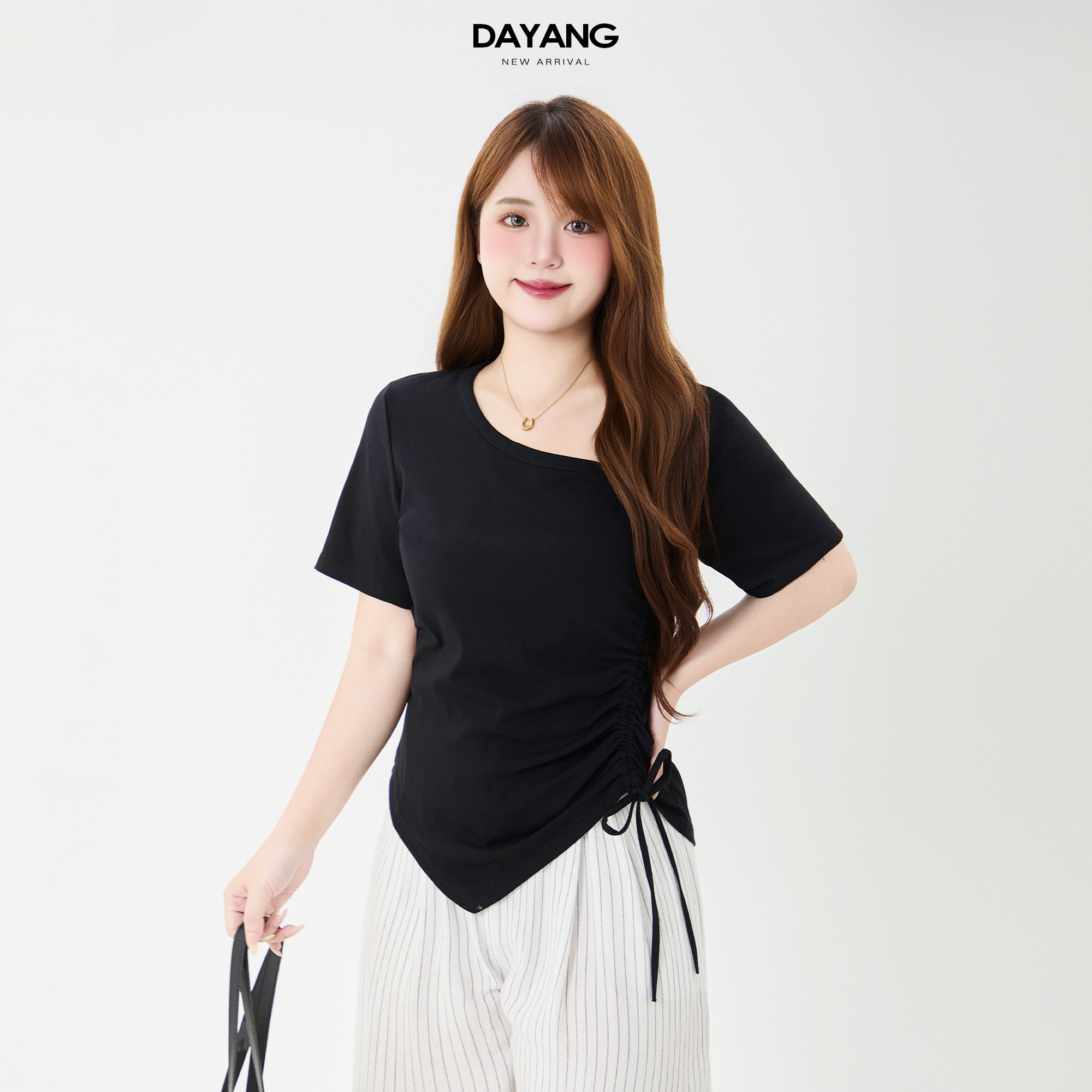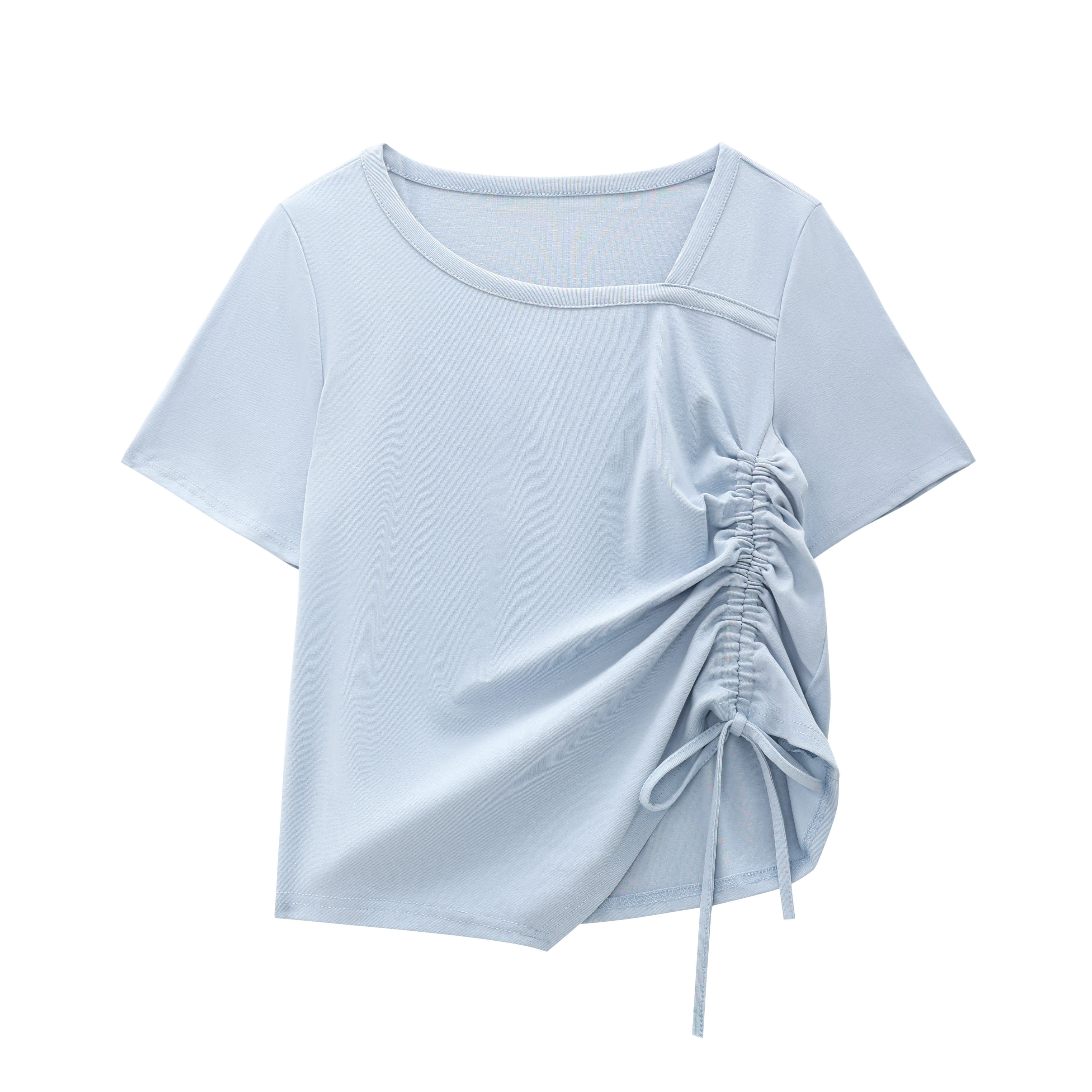 t恤女夏季 胖mm褶皱短袖 小个子正肩独特漂亮抽绳上衣 大杨 120斤
