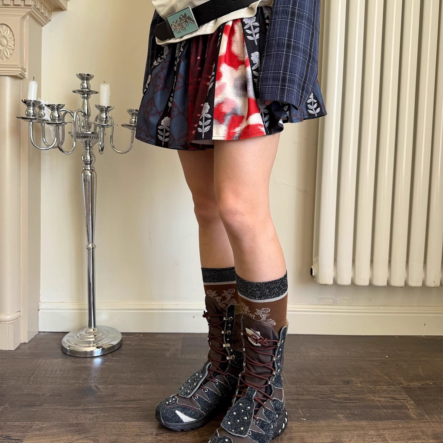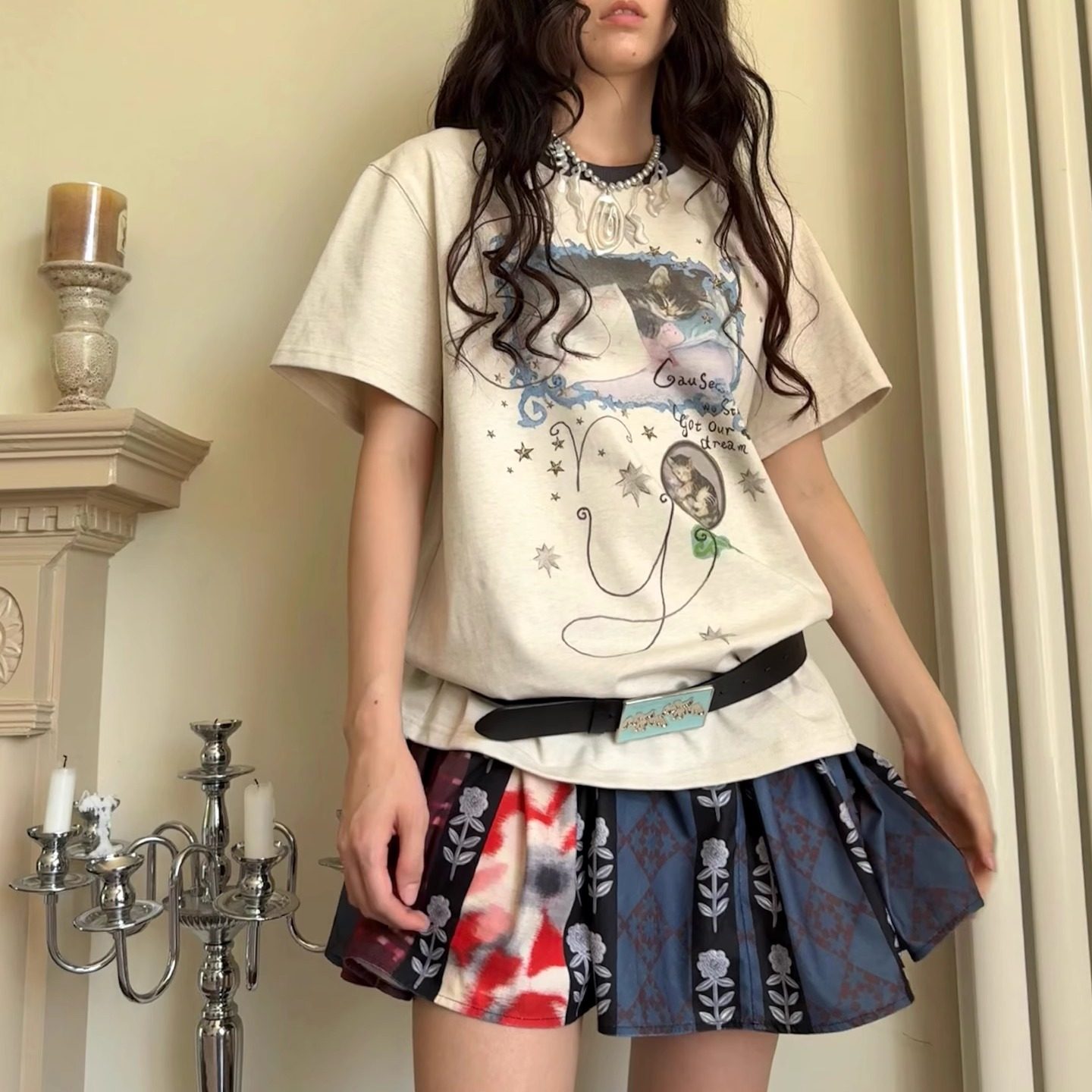crycry哭哭乐园 金属花朵印花复古感短裙半裙