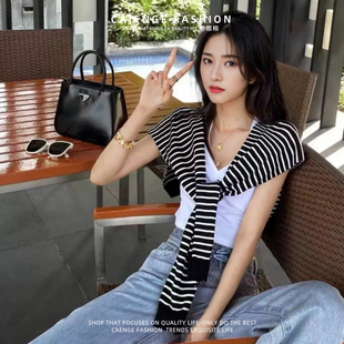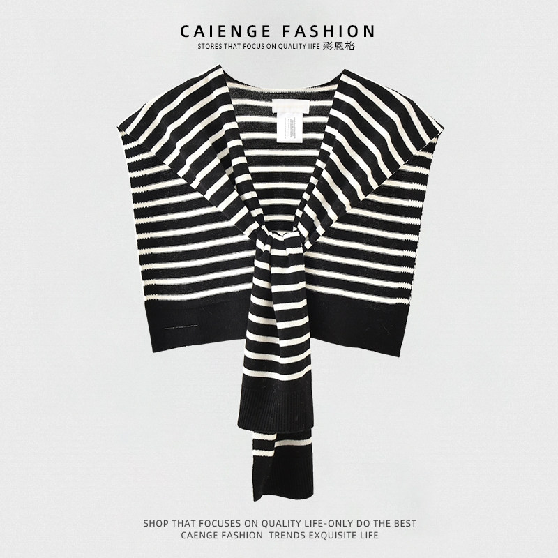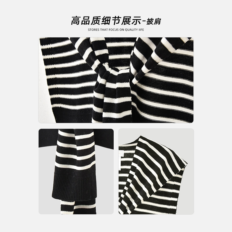 小坎肩薄款 配裙子衬衫 罩衫 春秋空调房针织条纹披肩外搭女2025新款