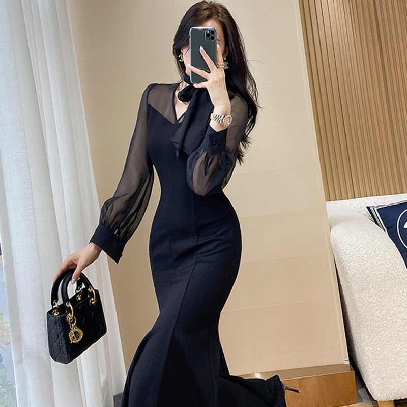 歌莉娅丝绒连衣裙女秋冬大方得体连身裙正式 场合小黑裙1BNR4K360