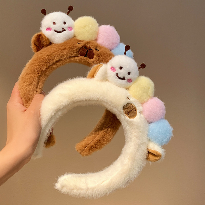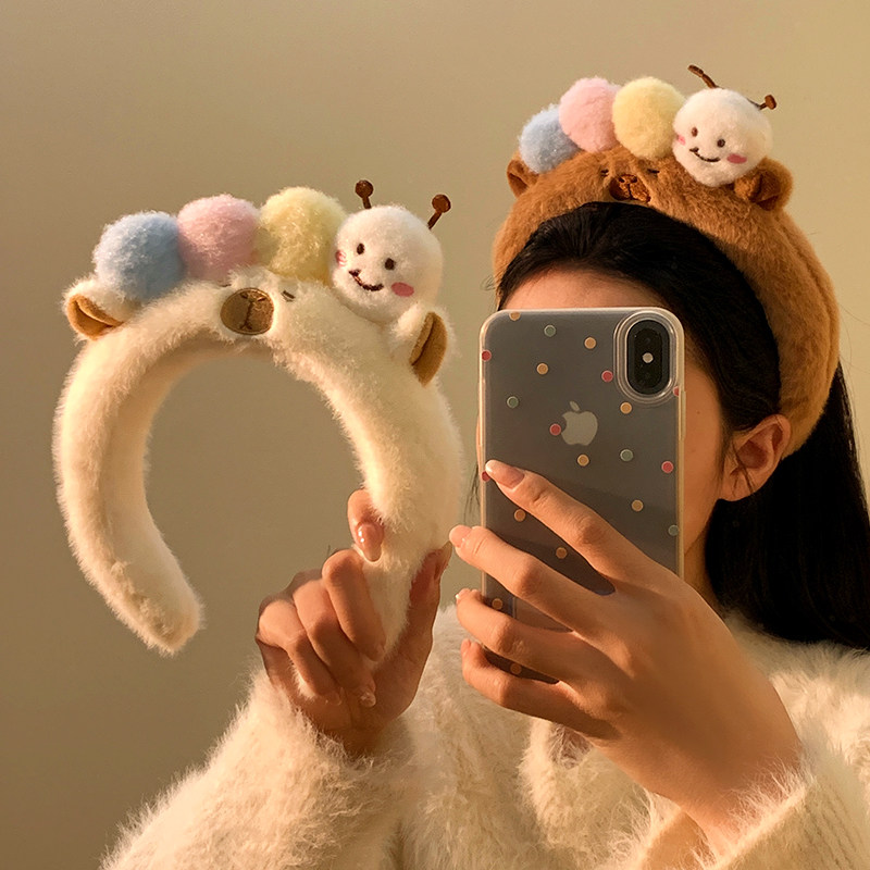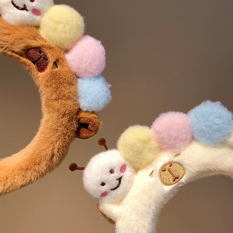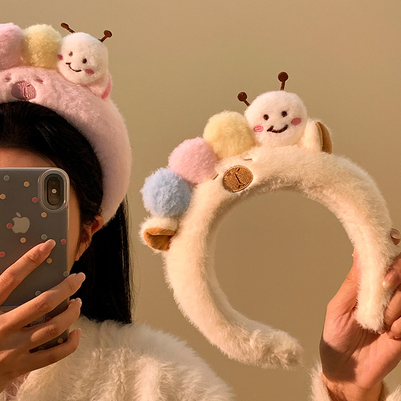 可爱毛毛虫毛绒发箍女款 洗脸化妆专用卡通头箍不勒头秋冬发卡发饰