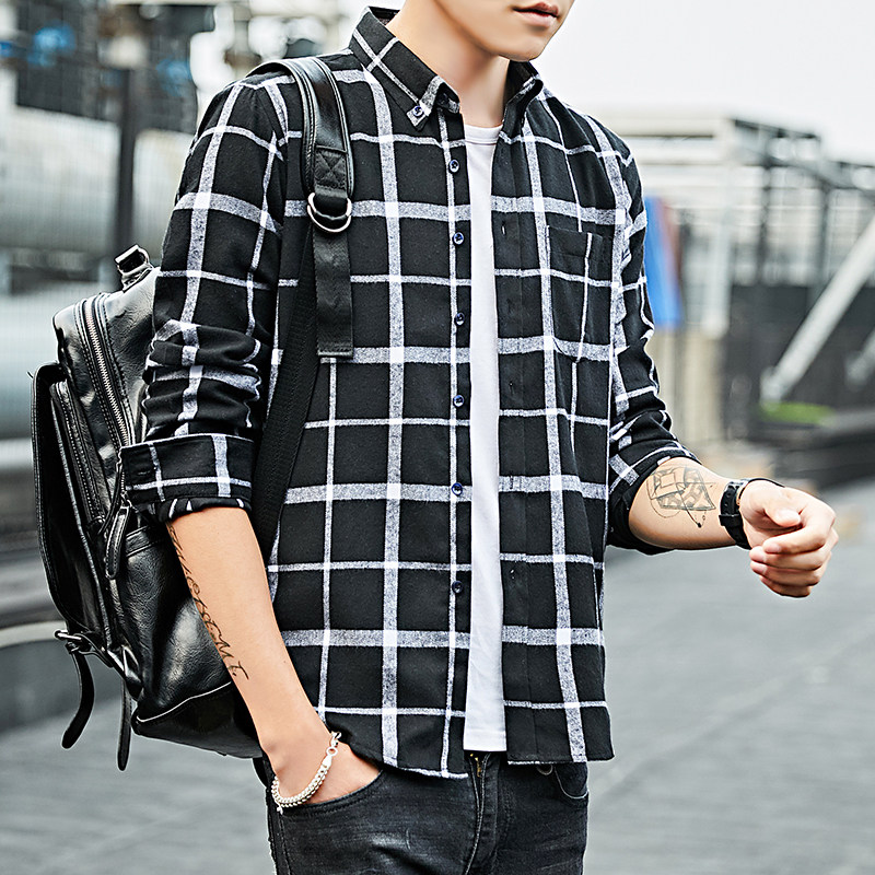 休闲订婚白色长袖 韩版 免烫抗皱秋季 黑色衬衫 衬衣男 高级感商务男士