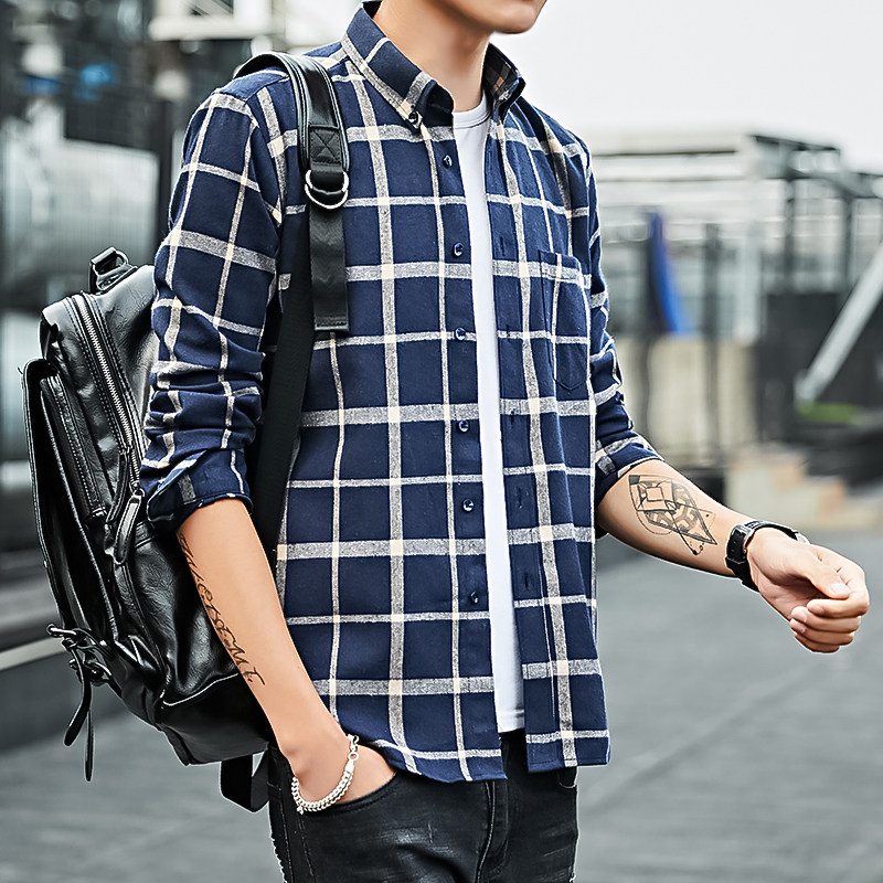 男长袖 CULTUM帝国领针孔领人字纹纯棉衬衫 衬衣 亲肤保暖法兰绒