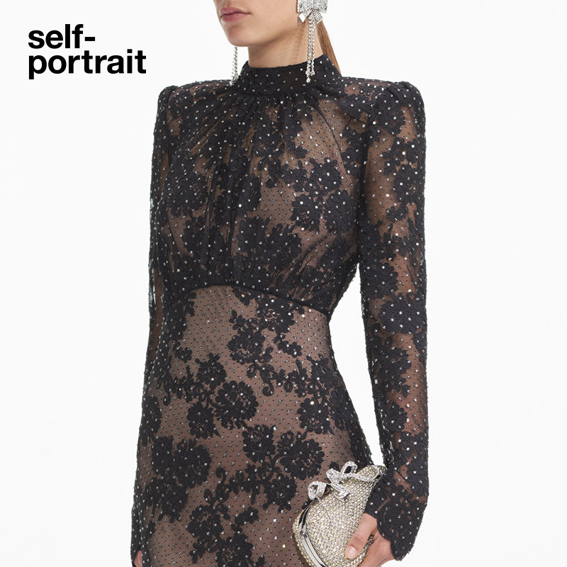 黑满钻星河蕾丝长袖 秋冬经典 礼服连衣裙 portrait self