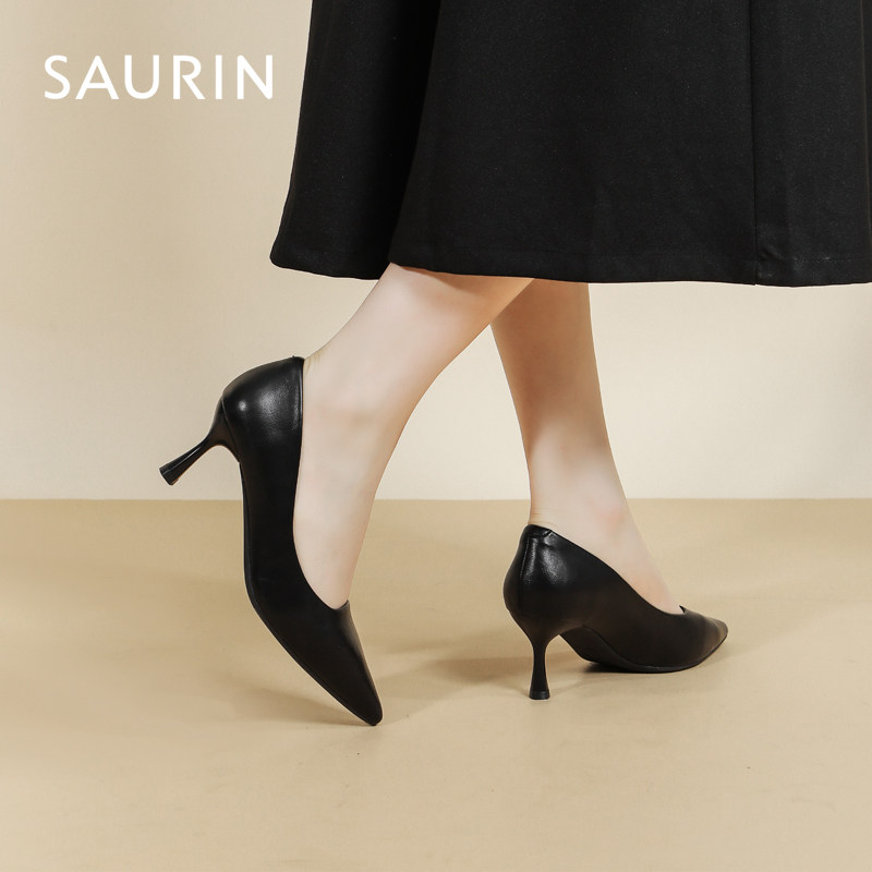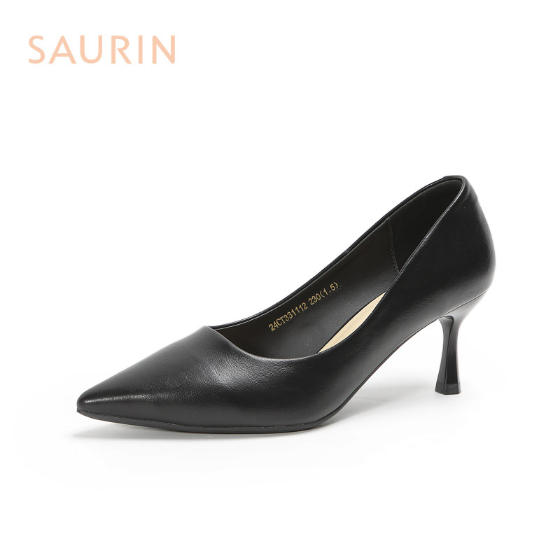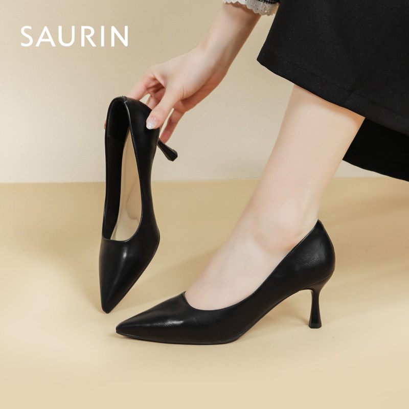2025年春秋新款 尖头浅口裸色女百搭性感侧空细跟高跟上班通勤 单鞋
