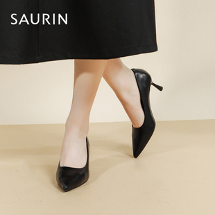御姐高级感职业2025高跟鞋 女黑色细跟气质名媛绒面浅口不累脚单鞋