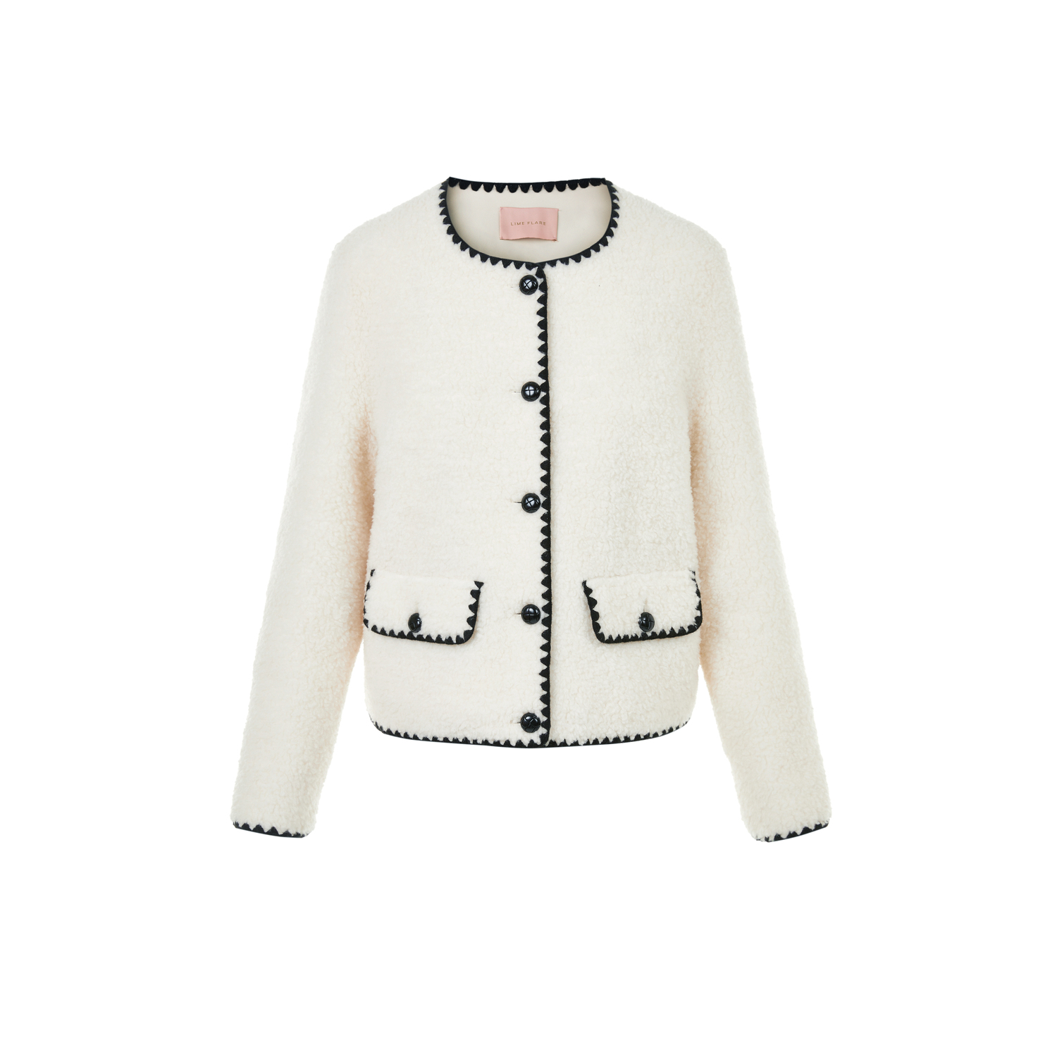 LIME莱茵圆领无领式 百搭宽松女外套 羊毛简约短大衣白色秋冬新款