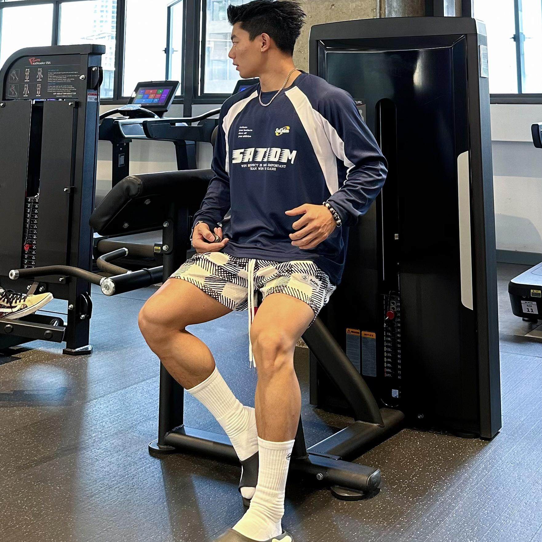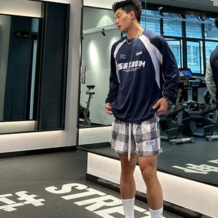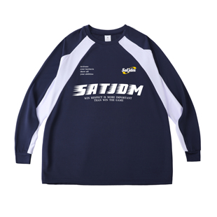 Satjdm美式 拼接撞色插肩复古篮球运动训练T恤健身跑步体育生 长袖