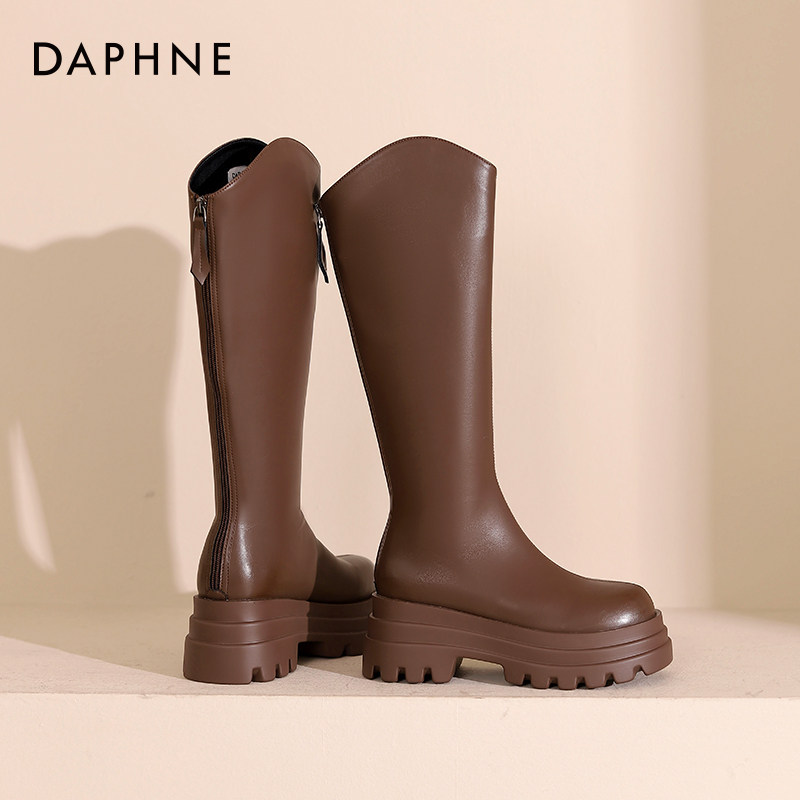 达芙妮厚底V口长筒靴女2025新款 秋冬复古高筒靴骑士靴显瘦靴子女