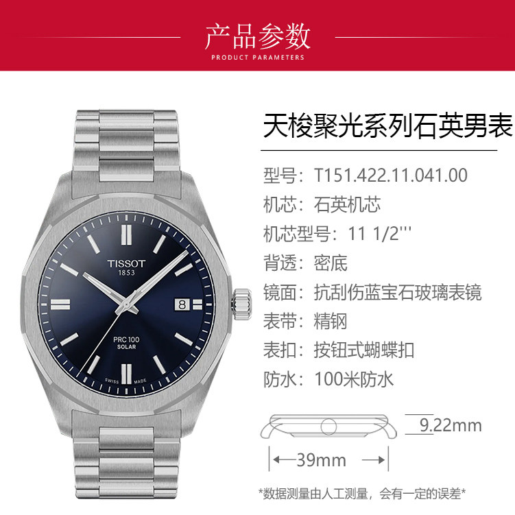 3期免息 天梭TISSOT聚光系列太阳能男表石英钢带防水手表联保 新款