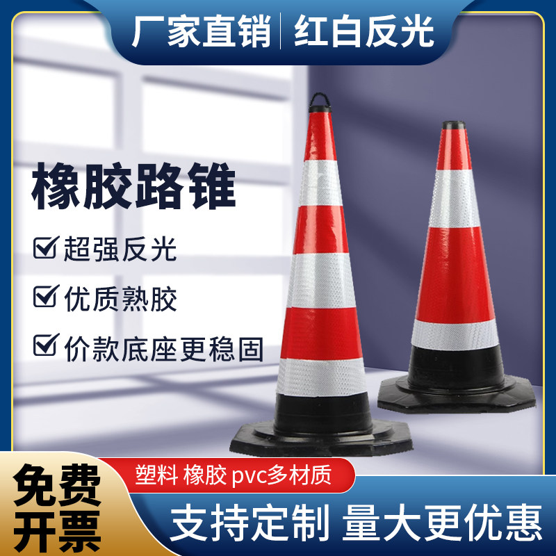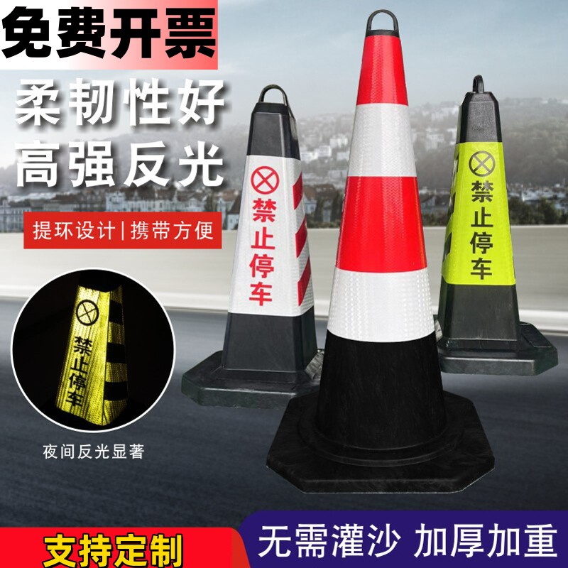 70cm橡胶路锥反光锥圆锥90cm雪糕筒提环隔离锥路障施工锥形桶