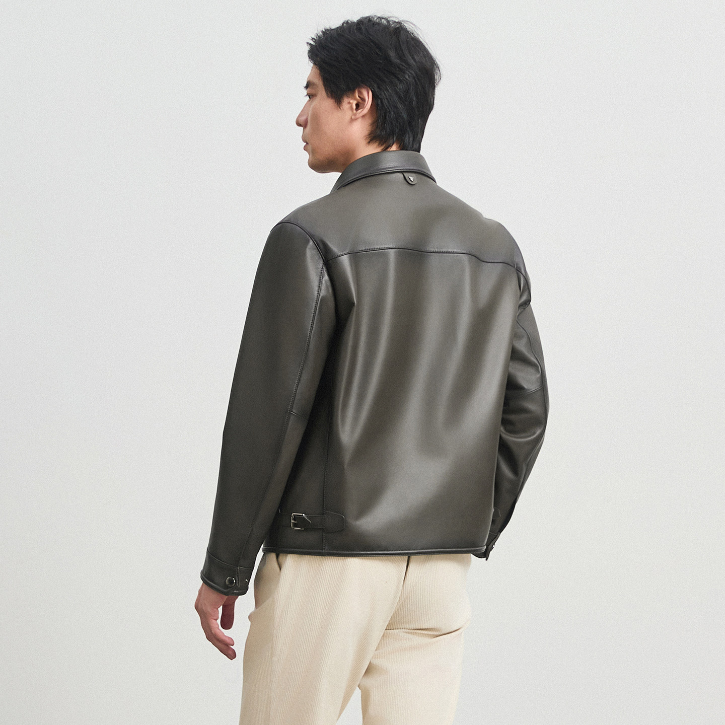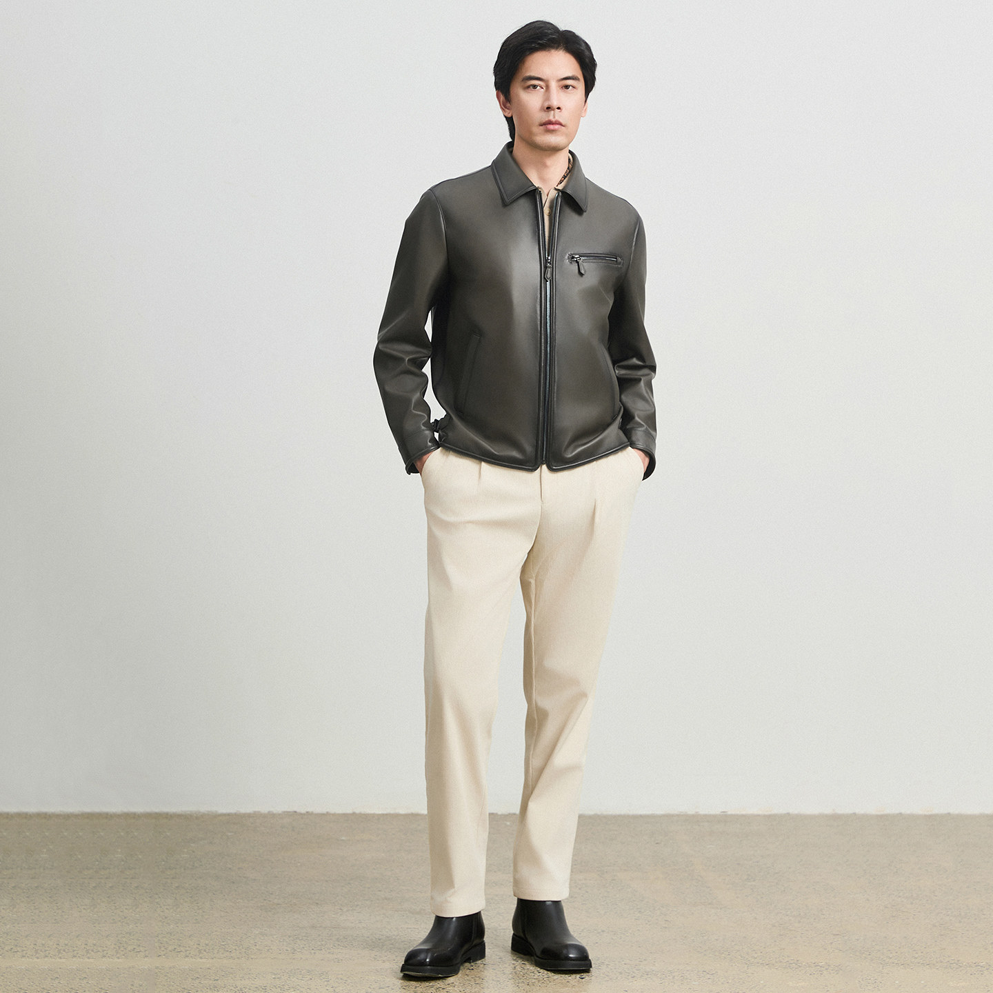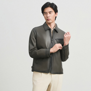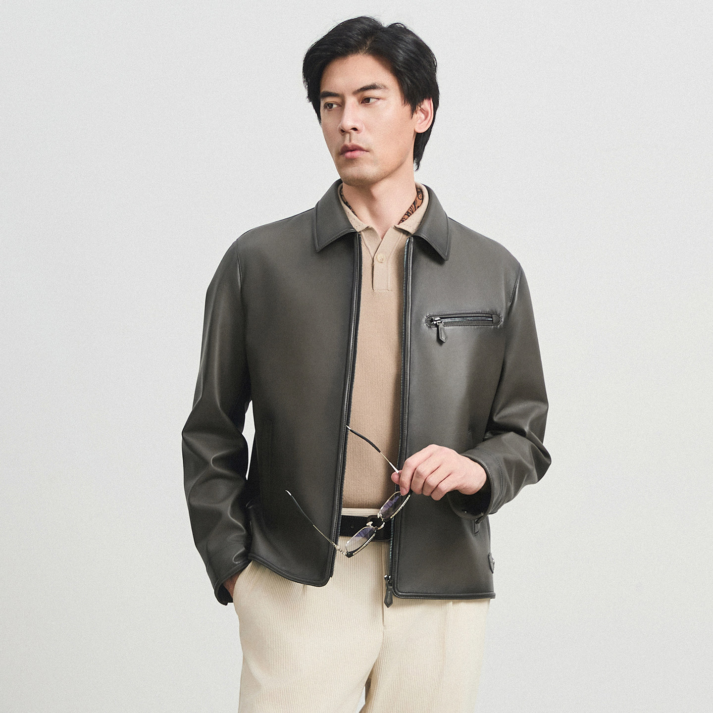 专柜同款 25秋冬头层绵羊皮复古机车真皮男雪豹擦色翻领皮夹克 新品