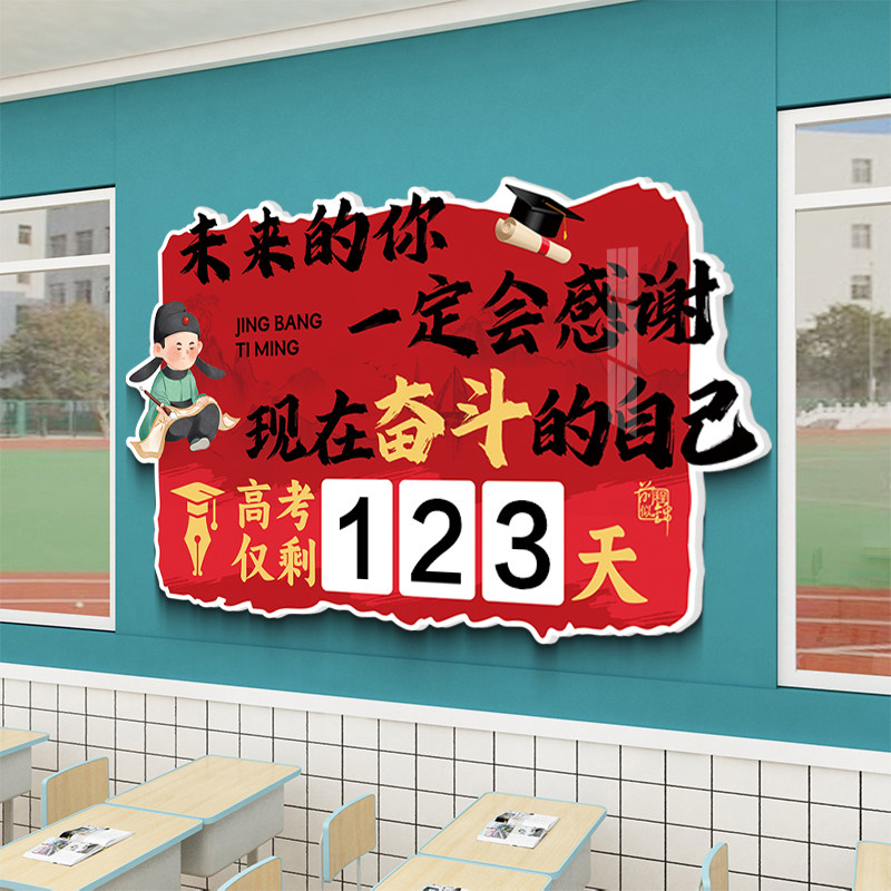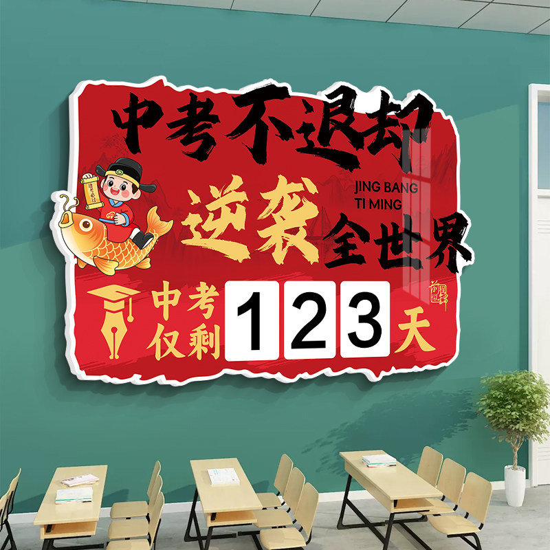 中高考倒计时励志文化墙贴纸教室装 饰画中考提醒牌加油标语贴画