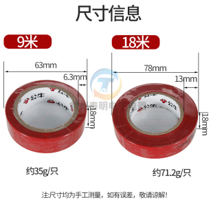公牛电工绝缘大胶带高粘度阻燃彩色PVC电线电气粘性高温胶布黑色
