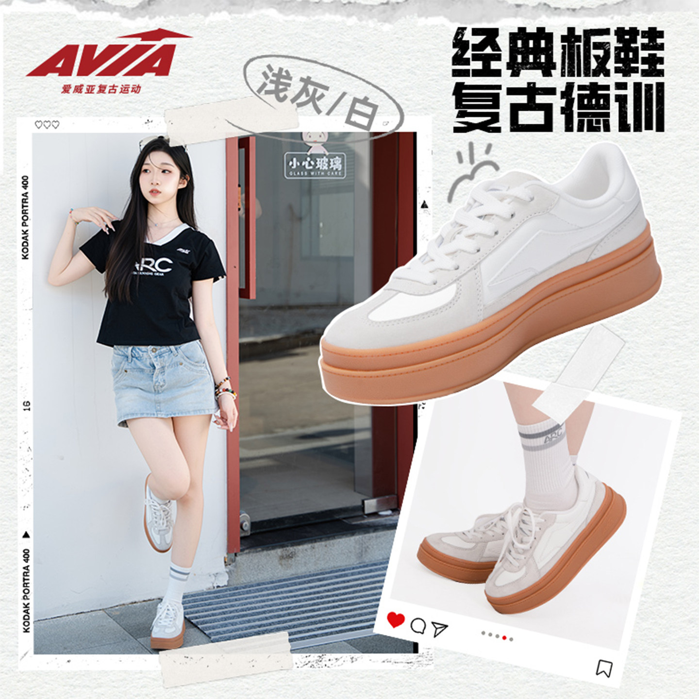 运动鞋 AVIA爱威亚复古厚底增高德训鞋 软底舒适女款 百搭板鞋 经典
