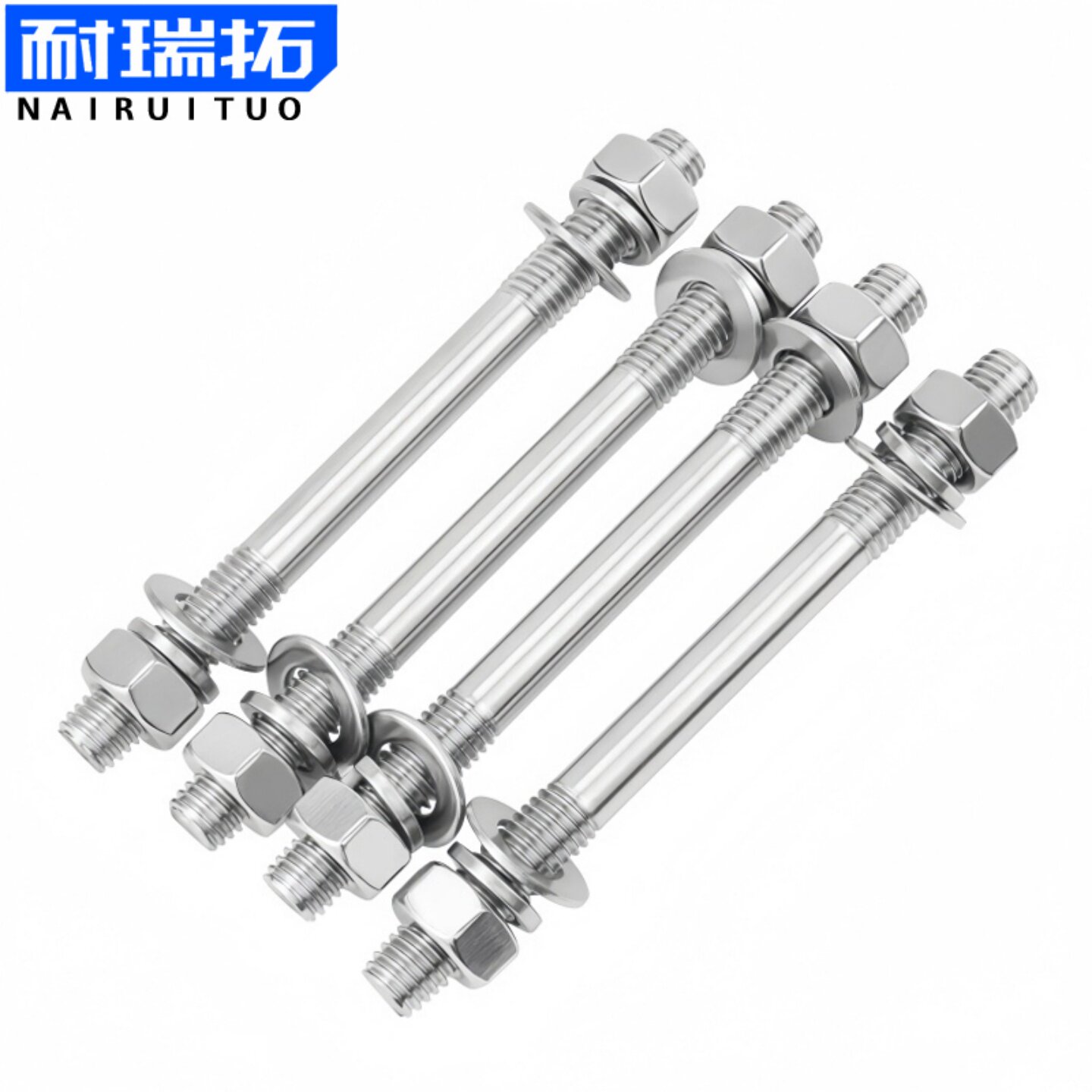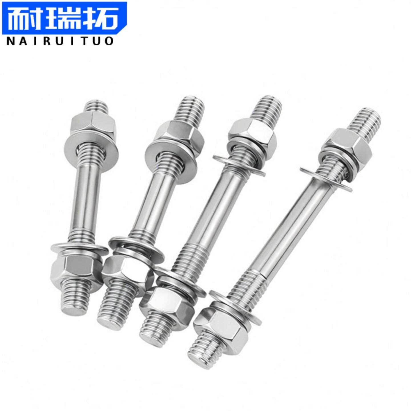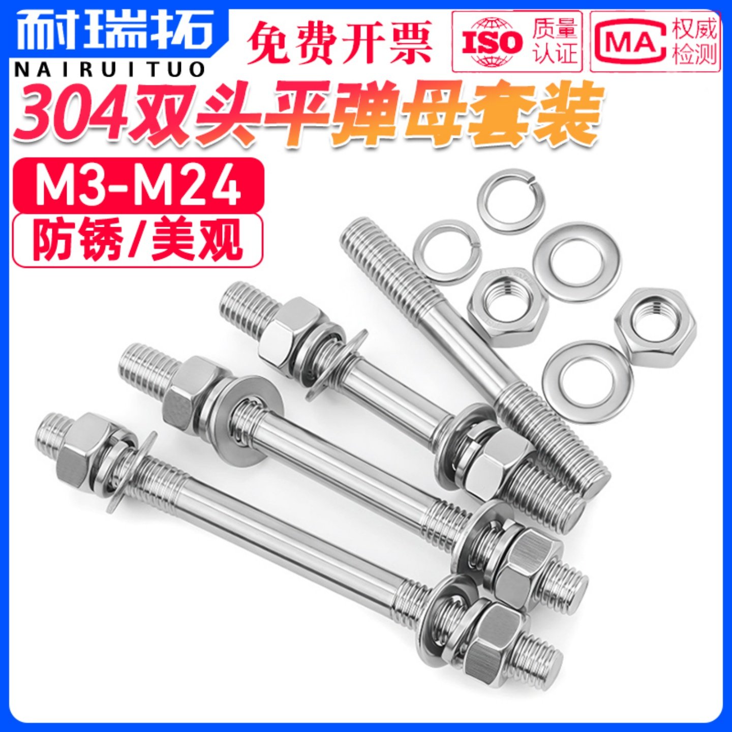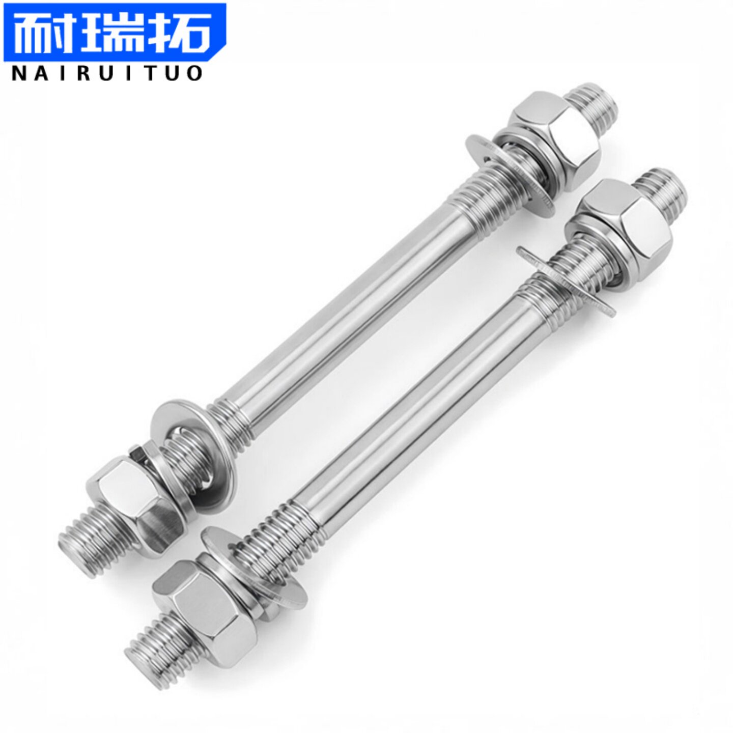 304不锈钢双头螺丝平弹母套装 两头牙螺栓螺母丝杆穿墙螺杆 组合