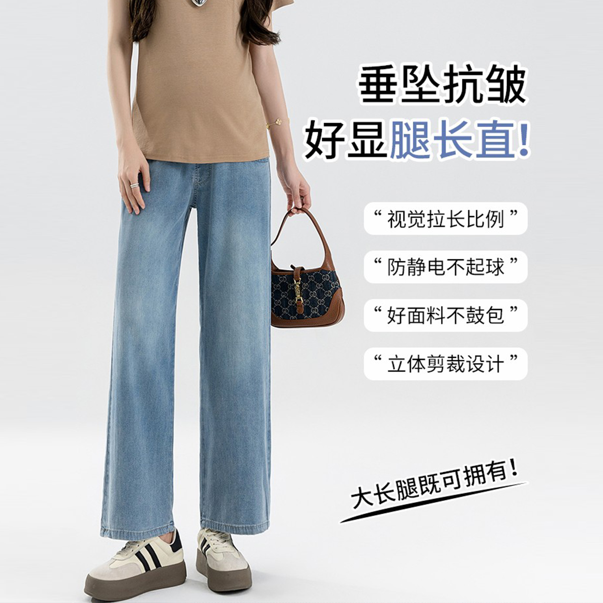 孕期小个子垂顺阔腿长裤 外穿天丝牛仔直筒裤 女 子夏薄款 婧麒孕妇裤